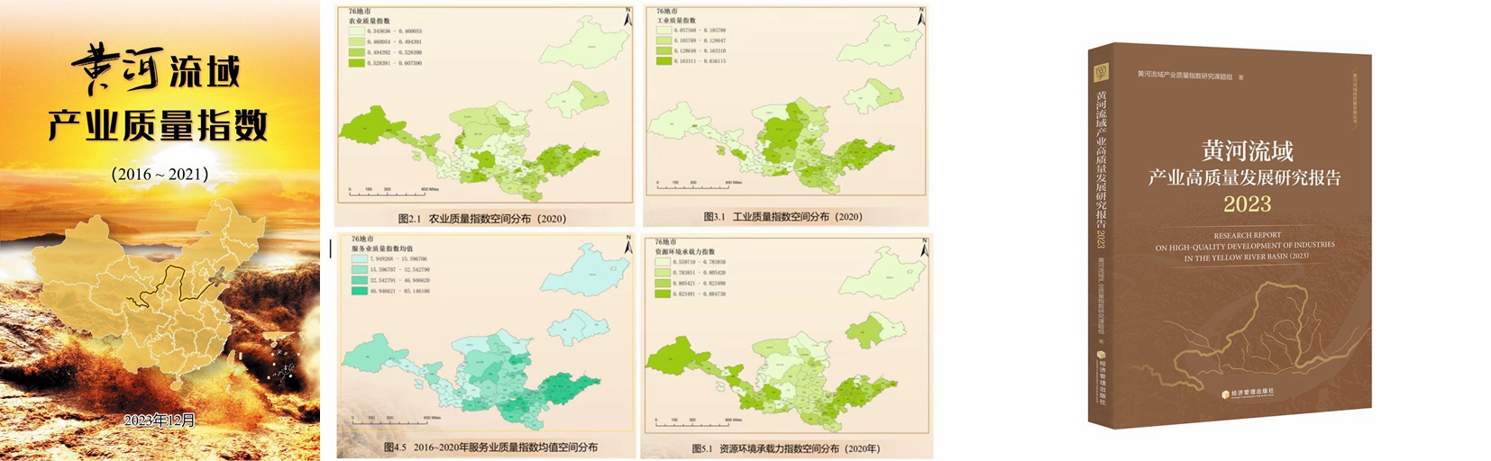 丰富理论内涵。团队锚定习近平生态文明思想,历时六个月编制全国首个“黄河流域产业质量指数(2016-2020)”,用数据测量黄河流经的八个省(自治区)和76个地级市的产业质量指数,为黄河流域产业质量发展和区域治理提供了科学的量化评价体系和系统的借鉴范例。为推动该项研究的动态性、时效性和可持续性发展,团队又先后发布2021年和2022年黄河流域产业质量指数,全面梳理地方政府资源,逐步扩大涉河职能地区同频共振、同向发力“朋友圈”,有效带动了黄河流域生态保护与高质量发展共建共享,为黄河流域生态保护与高质量发展奠定了坚实基础。
