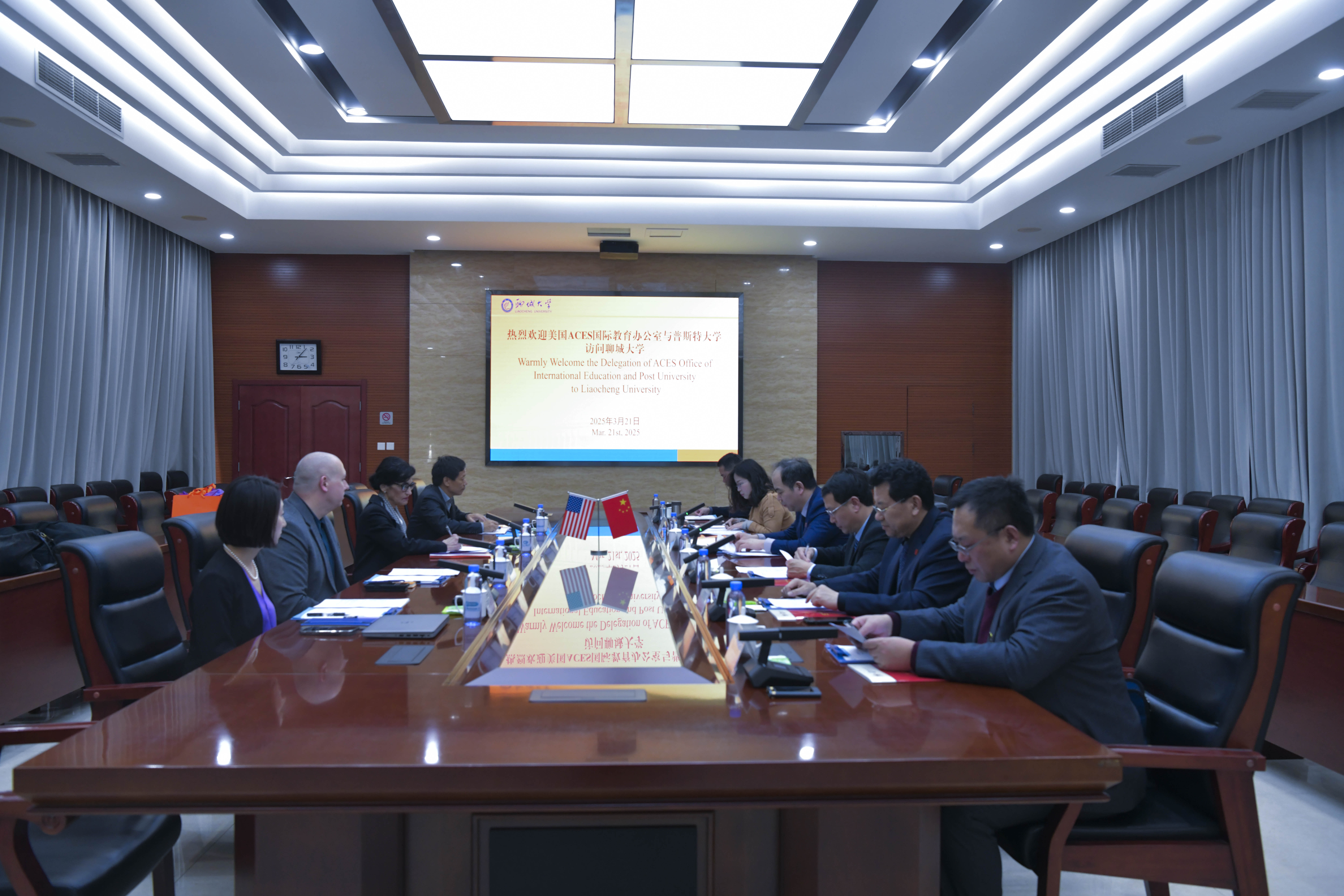 3月21日,美国ACES国际教育办公室主任杰森·平野、普斯特大学常务副校长桑德拉·阿费尼托一行来校访问。校党委常委、副校长李华锋接待了客人。国际教育交流学院、医学院、生物制药研究院、国际合作交流处负责人参加座谈。