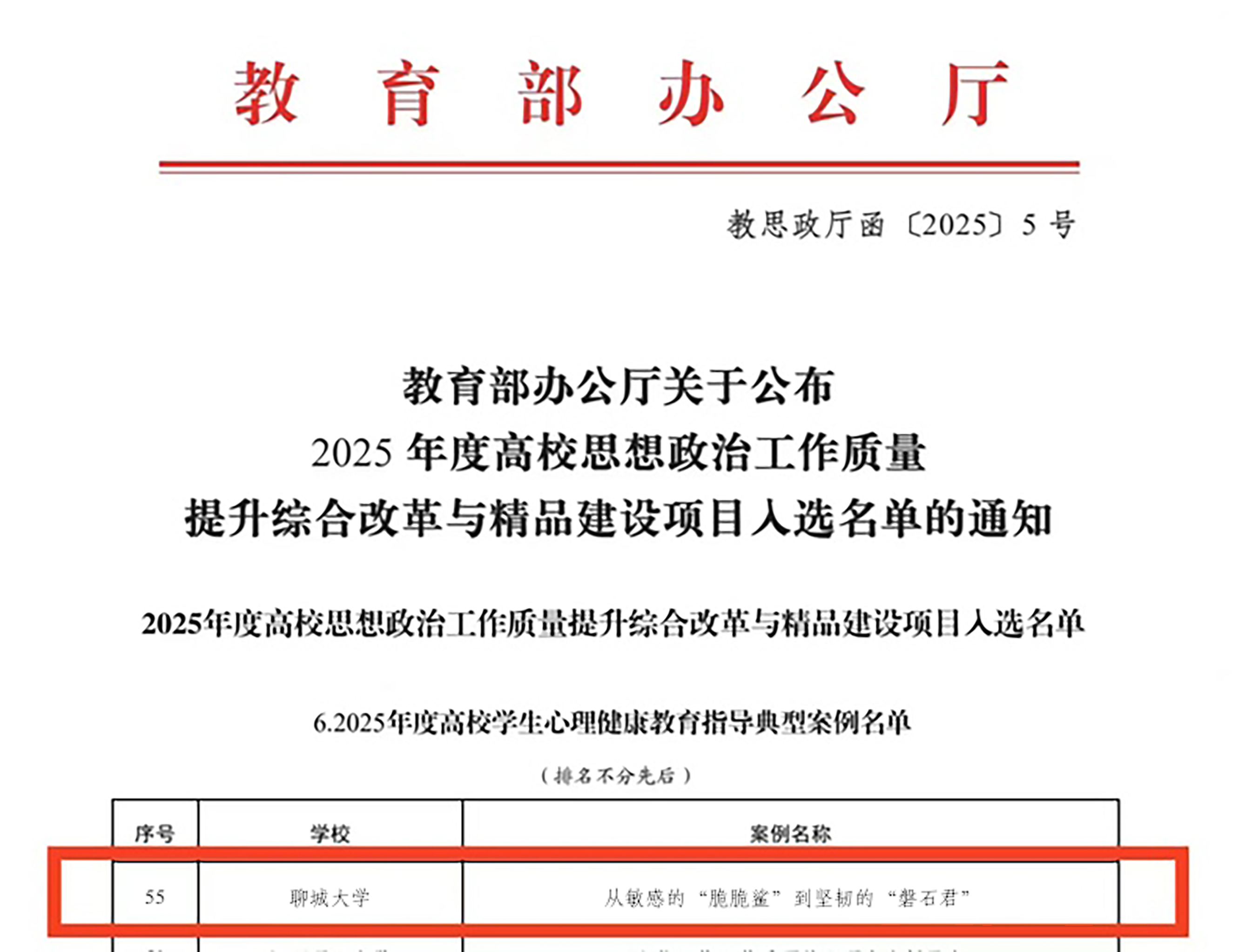 近年来,学校高度重视学生心理健康教育工作,以提升学生心理健康素养为出发点,不断创新心理健康教育方式方法,围绕《全面加强和改进新时代学生心理健康工作专项行动计划(2023—2025年)》的目标任务与工作要求,形成了“467阳光聊大”心理健康教育体系,精心营造了“向阳而生、逐光而行、拥抱当下、遇见未来”的良好心理育人氛围。