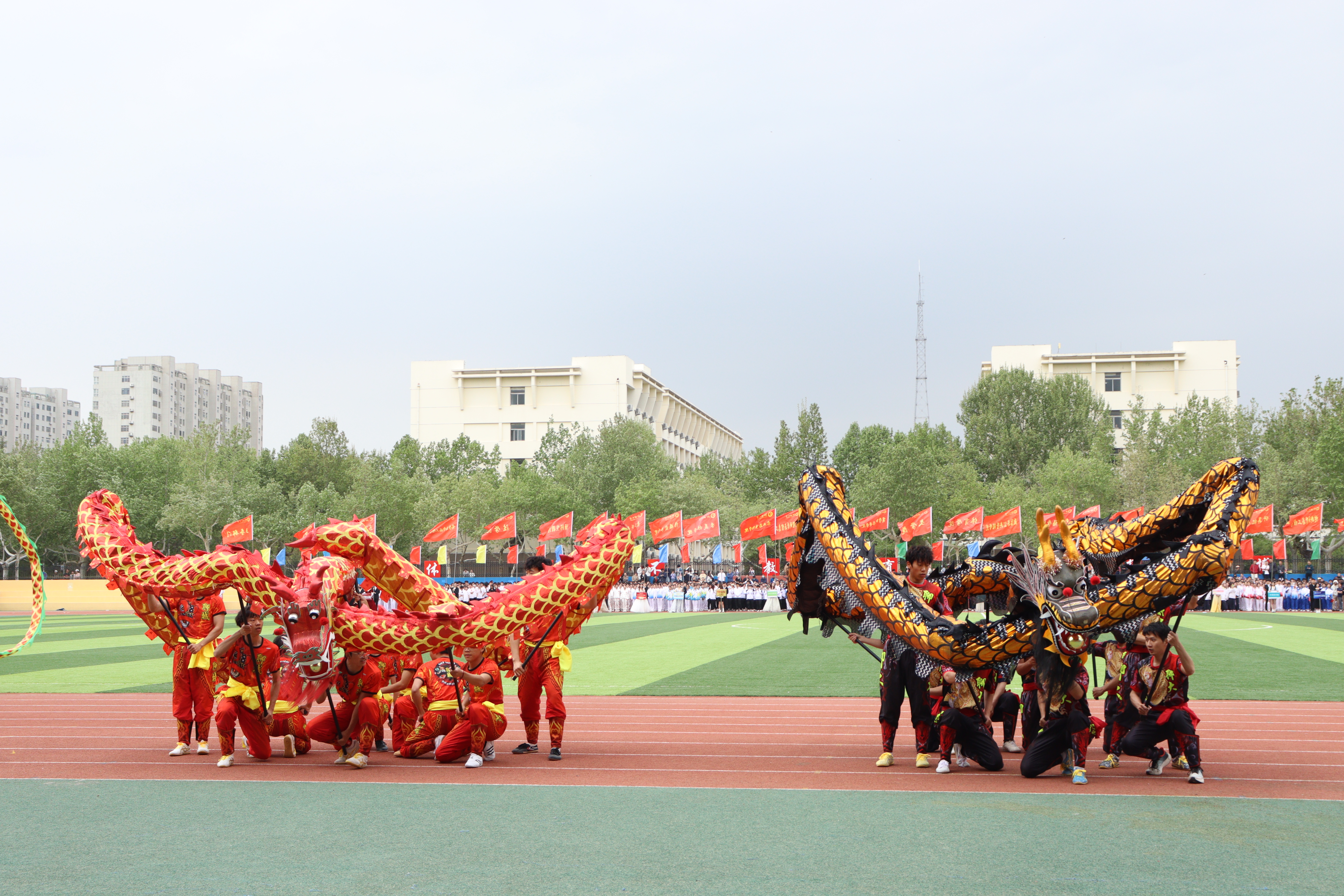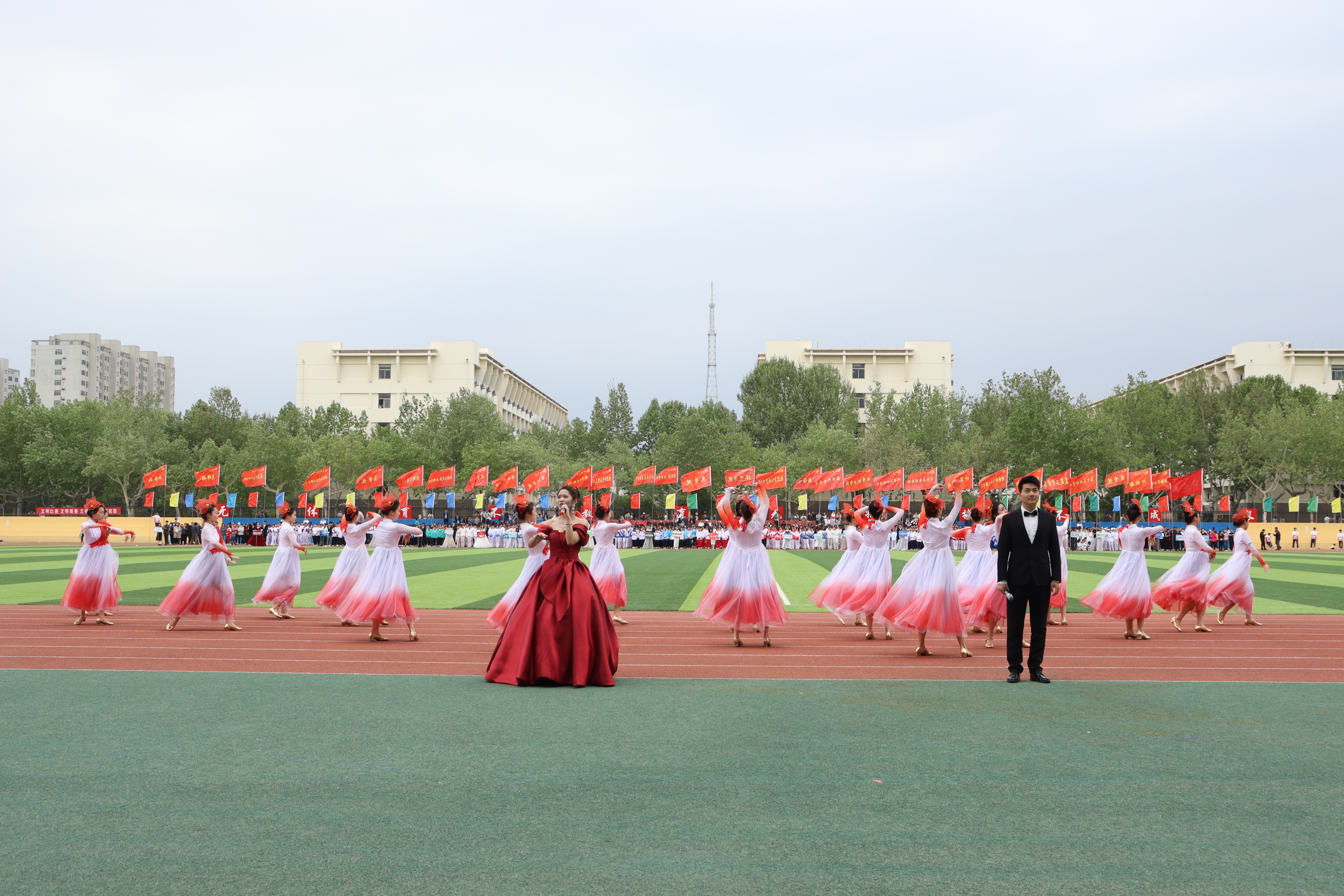 音乐与舞蹈学院、体育学院获入场式队列一等奖,马克思主义学院、化学化工学院、商学院(质量学院)、政治与公共管理学院获入场式队列二等奖,农业与生物学院、美术与设计学院、计算机学院(浪潮信息技术学院)、传媒技术学院、教育科学学院、医学院获入场式队列三等奖。