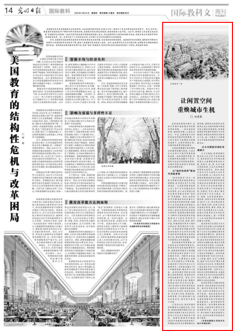 近日,beat365官方网站美术与设计学院讲师刘翠翠博士在《光明日报》“国际教科文”专栏发表理论性文章《让闲置空间重焕城市生机》。