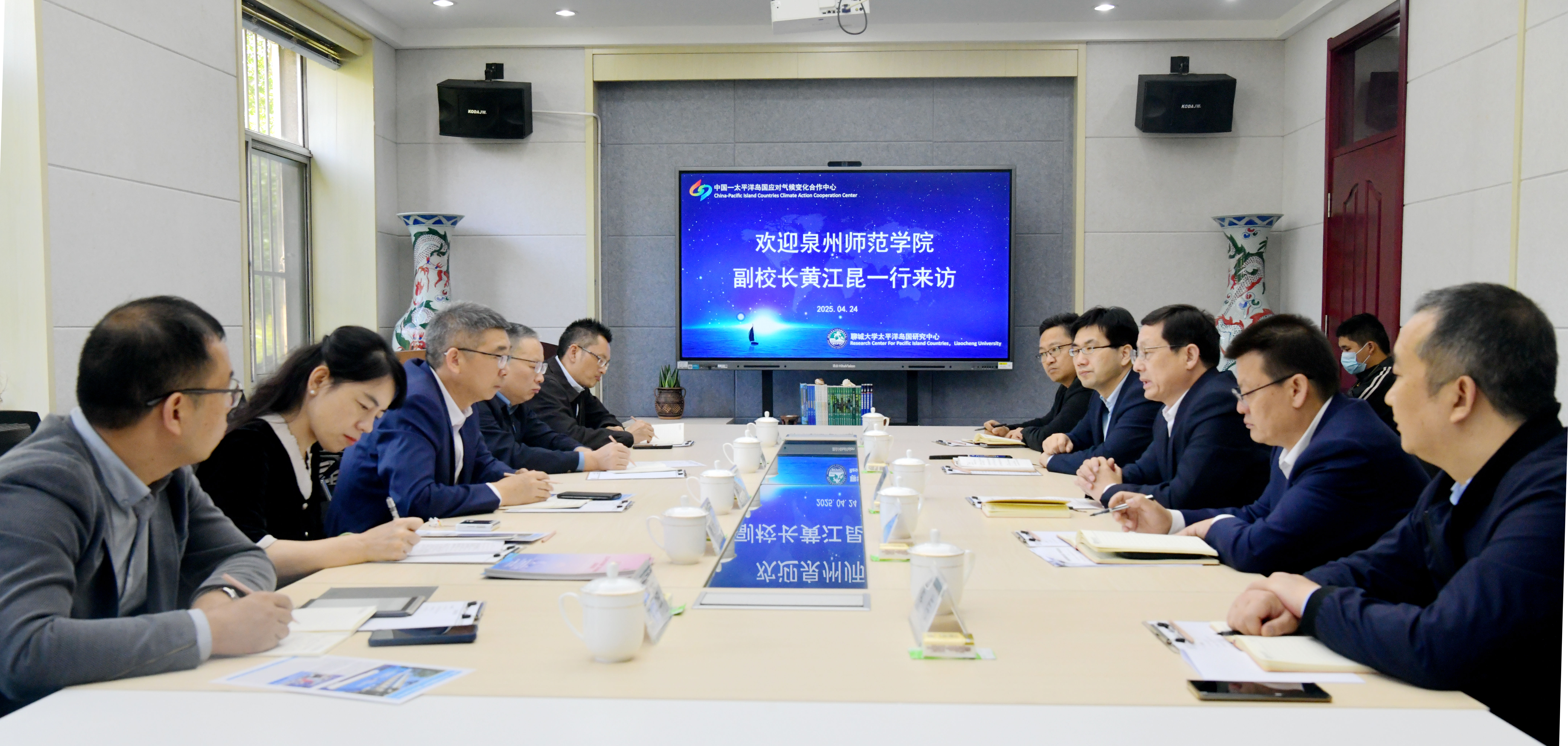 座谈会上,太平洋岛国研究中心负责人详细介绍了中心的发展历程、研究特色及社会服务成效,重点分享了在智库建设、国际研修班举办、应对气候变化合作等方面的实践经验。双方围绕学科交叉融合、科研团队建设、社会服务拓展等议题进行了深入交流,并达成了初步合作意向。