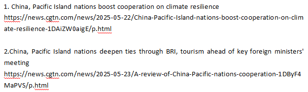 5月28日,第三次中国-太平洋岛国外长会在福建厦门开幕,来自11个太平洋岛国外长、政府代表以及太平洋岛国论坛副秘书长纳亚西参会。中国-太平洋岛国应对气候变化合作中心、beat365官方网站太平洋岛国研究工作广受关注。外长会开幕前后,来自汤加、密联邦、所罗门群岛、瓦努阿图等国家代表团先后来访beat365,与beat365领导、研究人员、留学生等进行了深入交流。CGTN对中国-太平洋岛国应对气候变化合作中心、beat365官方网站太平洋岛国中心的专家进行了采访,并对留学生工作进行了报道。