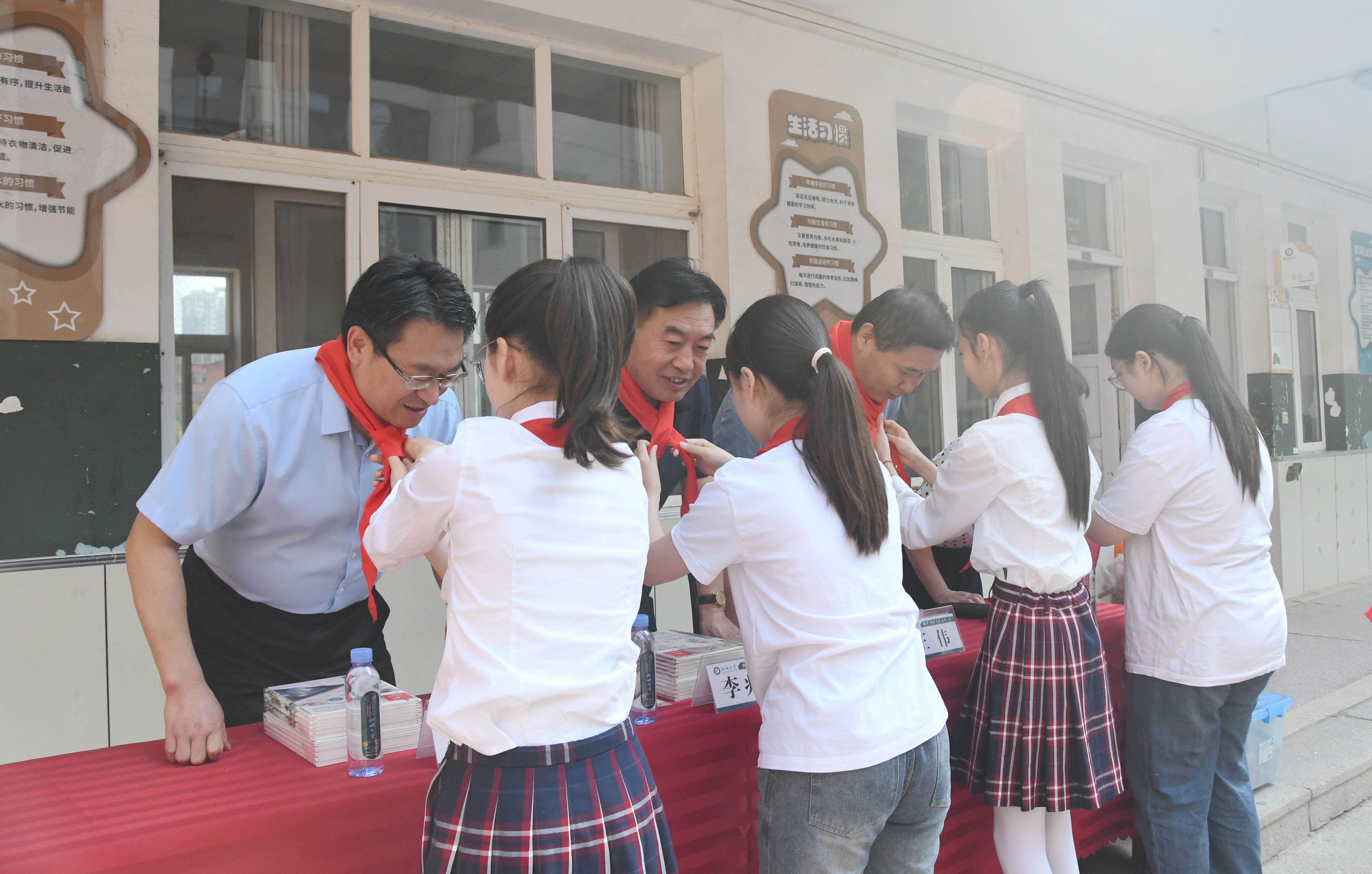 李兆俊走进班级,亲手将精心准备的学习用品等节日礼物送到孩子们手中,灿烂的笑容洋溢在每个人的脸上。附属小学的少先队员为他系上鲜艳的红领巾,用最质朴的方式表达敬意。李兆俊勉励孩子们从小树立远大理想,珍惜美好时光,养成良好品德,勤奋学习知识,锻炼强健体魄,努力成为对祖国、对社会有用的栋梁之材。