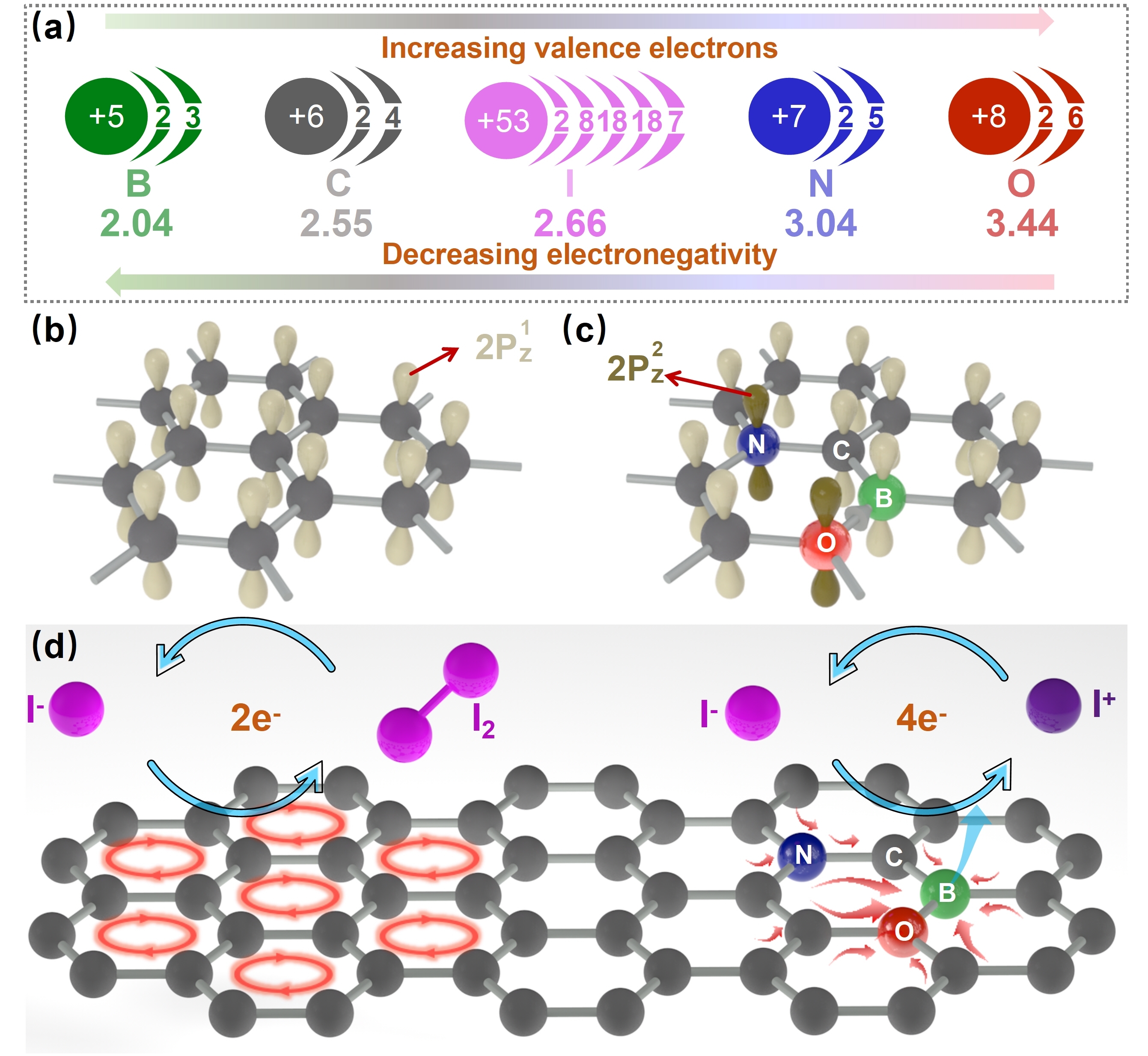 O-B-C-N结构调控电子流动方向示意图