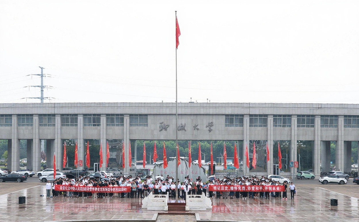 为纪念中国人民抗日战争暨世界反法西斯战争胜利80周年,根据学校思政年历安排,9月3日,学校于西校区南门十一广场举行“弘扬抗战精神,奋进复兴征程”国旗下话成长主题教育活动。校党委常委、副校长赵明吉,校党委常委、副校长、宣传部部长苏明海,校党委常委、组织部部长杨宏力出席活动。党委宣传部、学生工作处、团委、文学院、体育学院负责同志及各学院团委书记、青年师生代表共500余人参加活动。