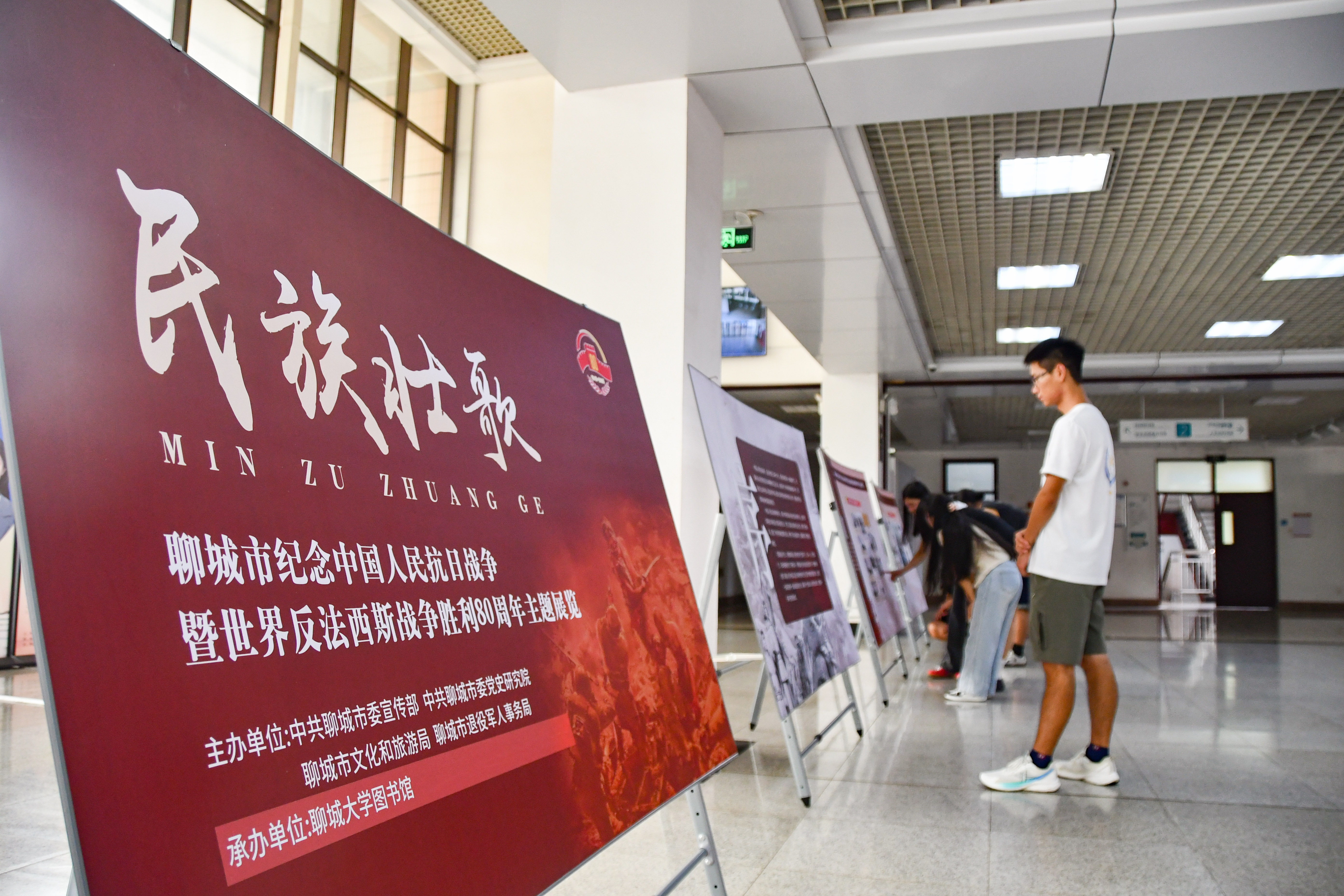 纪念中国人民抗日战争暨世界反法西斯战争胜利80周年之际,9月1日,beat365官方网站图书馆举办纪念抗战胜利80周年特展,特展分为三个分展览,包括中国人民抗日战争历史展、红色聊城的抗战史诗、抗战主题书展三个部分,位于东校区逸夫图书馆,这个“无声的思政课堂”吸引了众多beat365官方网站师生前来参观。