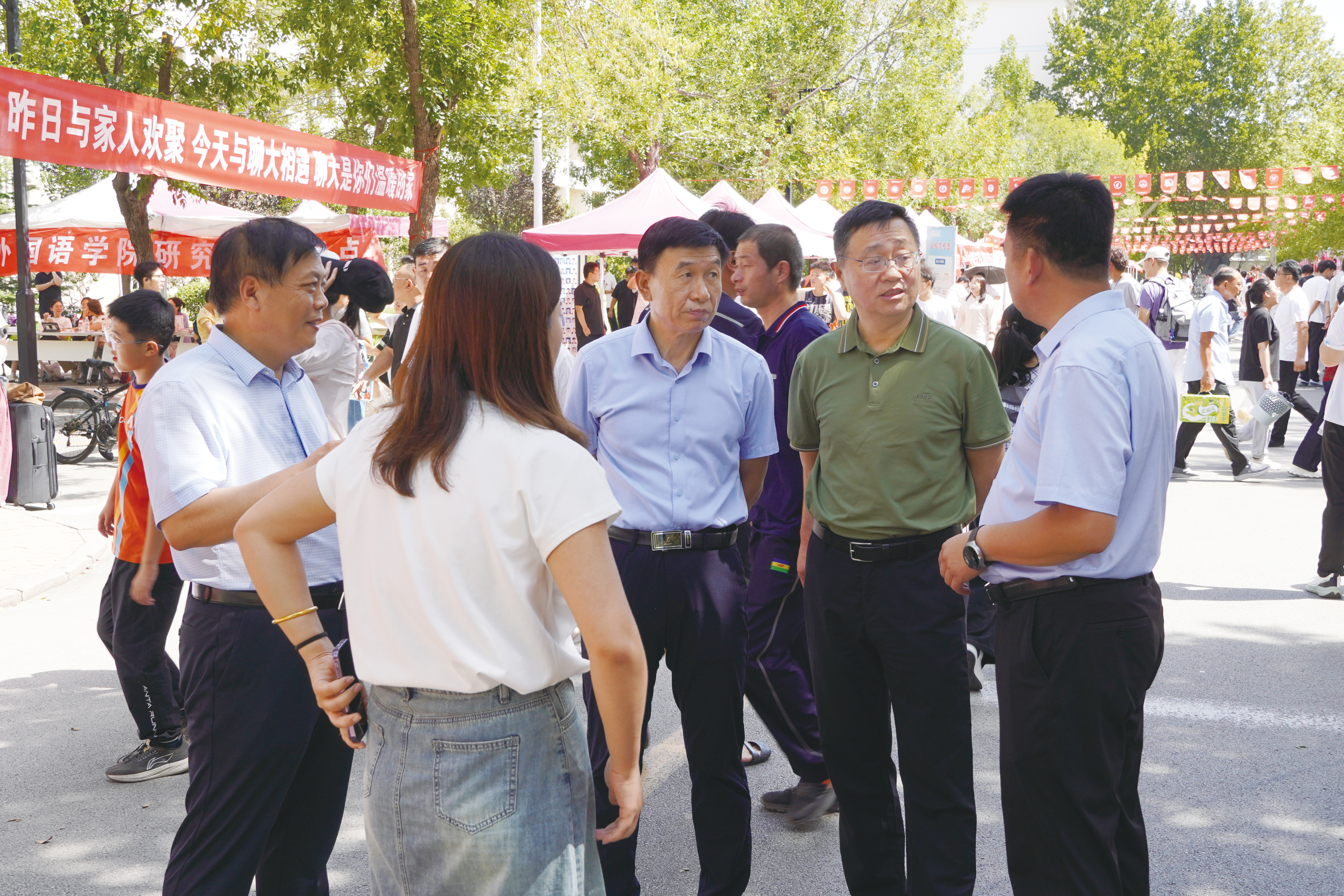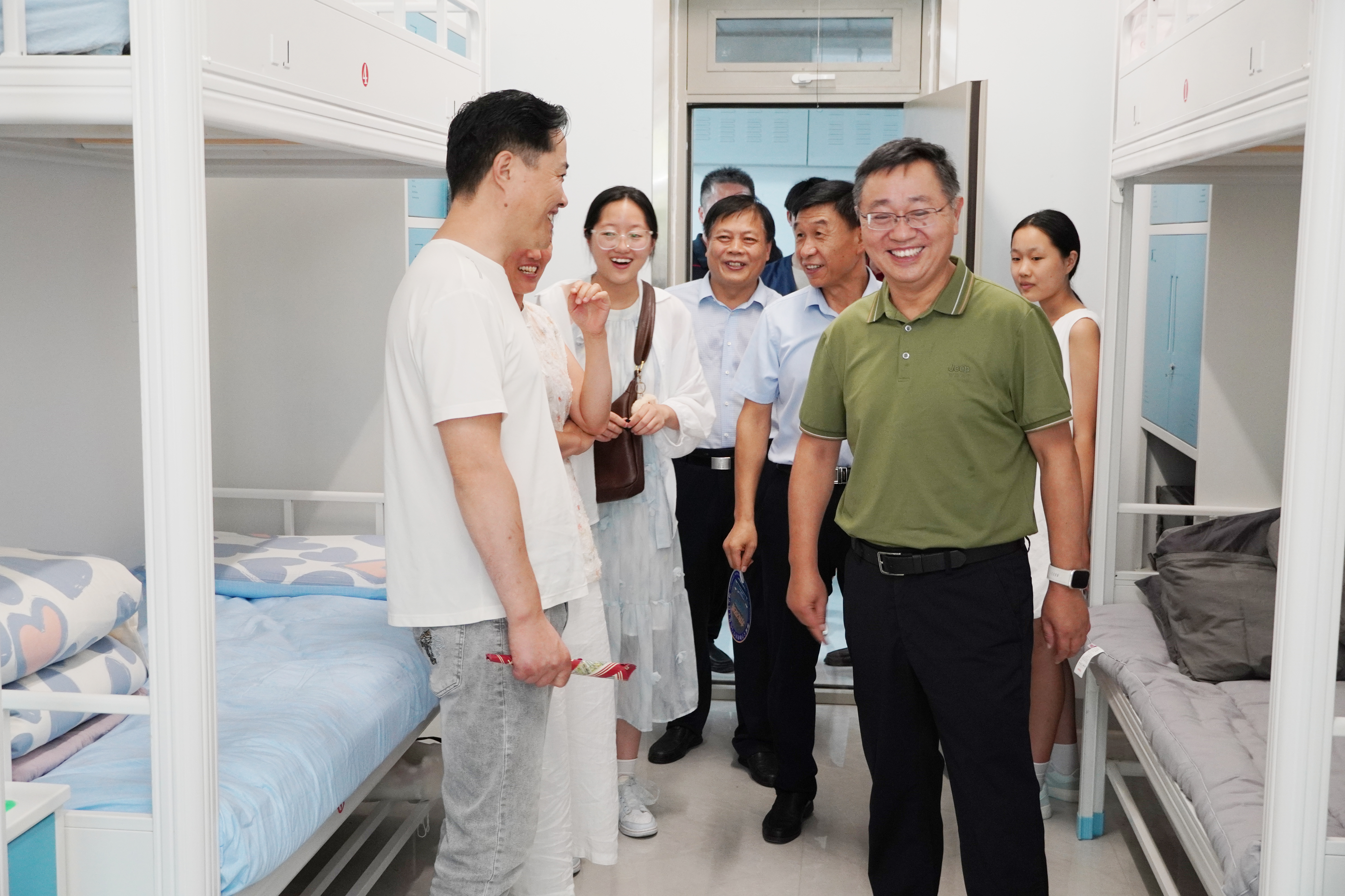 当天上午,党委书记关延平,党委常委、副校长赵明吉来到迎新现场,走访学院报到点。“报到流程顺不顺畅?”“有没有遇到需要帮忙的问题?”关延平与新生及家长亲切交谈,仔细询问报到的每个细节,同时查看行李存放、信息登记等服务保障情况。在学生宿舍,他走进新生房间,摸了摸床铺被褥,叮嘱新生“有困难随时找辅导员、找学校”,让暖意直达人心。面对忙碌的工作人员和志愿者,关延平反复强调:“要把服务做细做实,既要保障迎新安全有序,更要让新生感受到聊大的温暖,帮他们尽快适应新环境。”