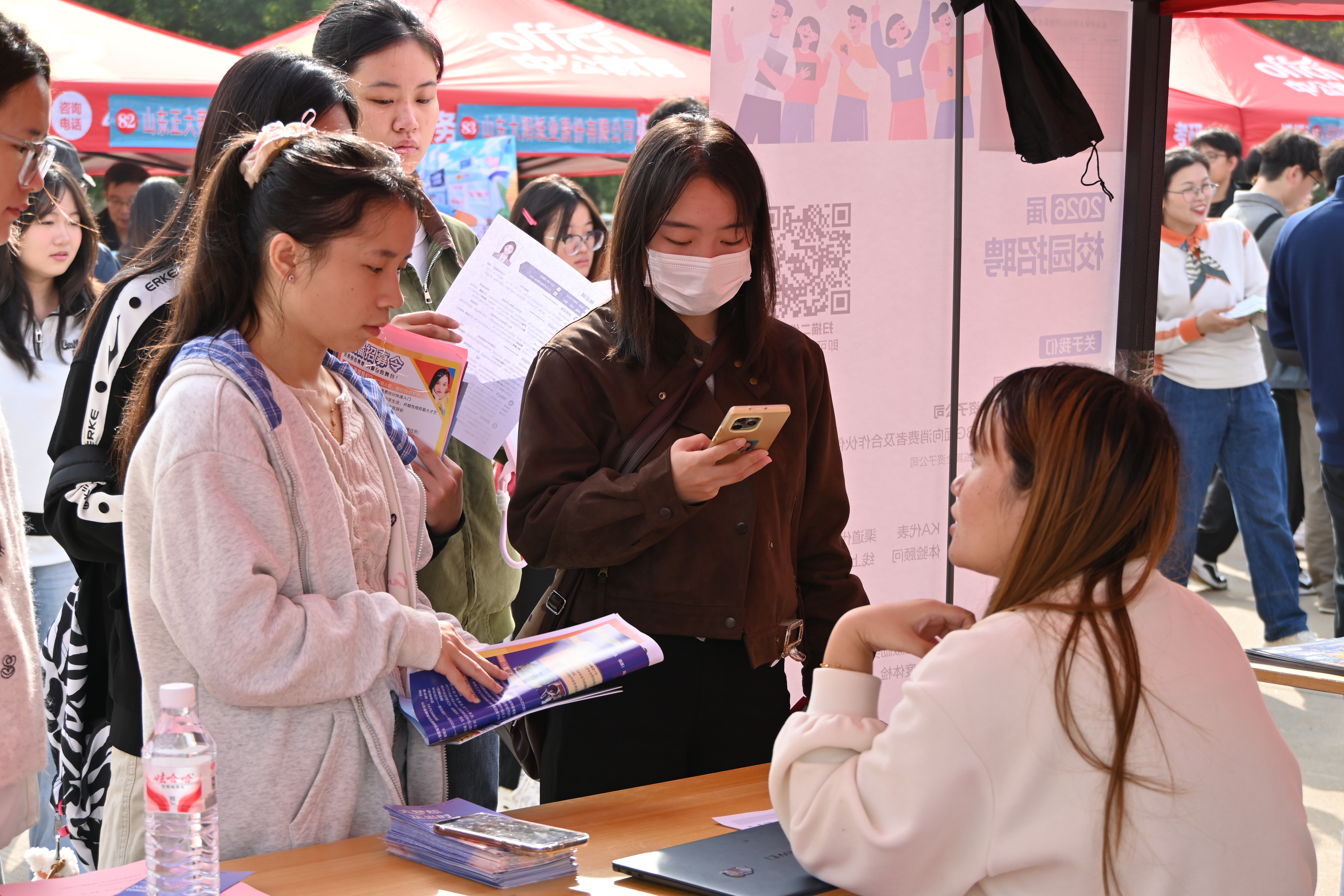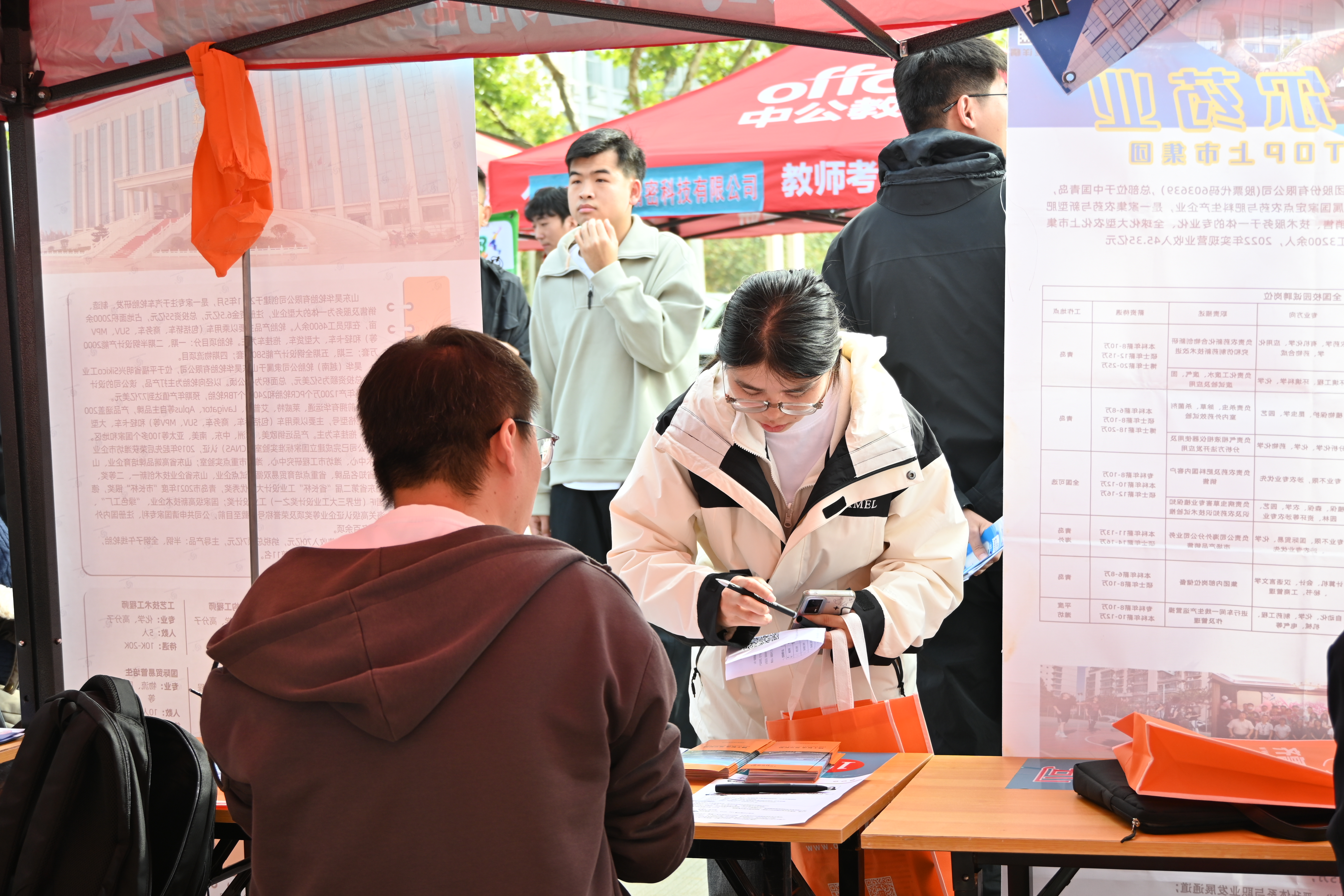 招聘会现场人头攒动,学生们手持精心准备的简历,穿梭在各个展位之间。用人单位也展现出极大的招聘热情,不仅耐心解答学生关于岗位要求、薪资待遇、职业发展等问题,还主动分享行业趋势与职场经验。为了提高招聘效率,不少企业还在现场设置了初面环节,通过简短的沟通,快速锁定心仪的候选人。