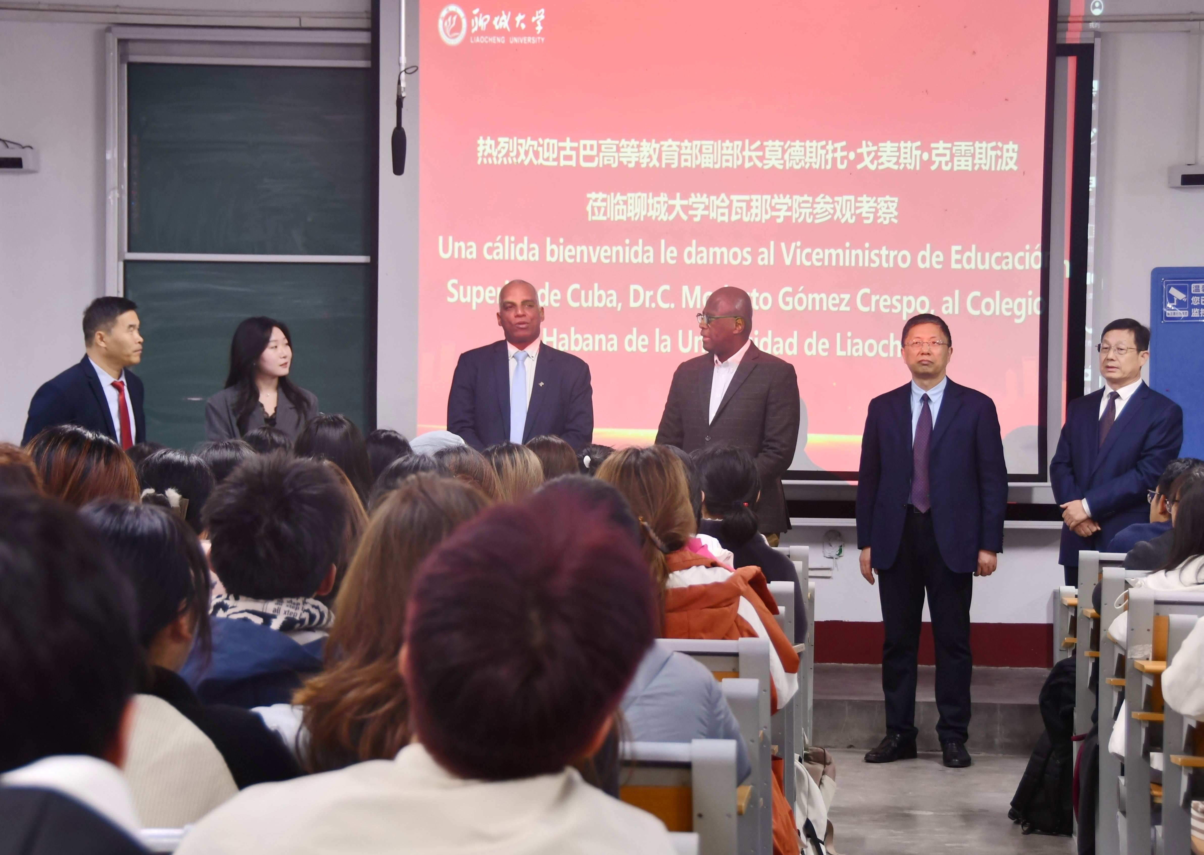 11月12日,古巴高等教育部副部长莫德斯托·戈麦斯·克雷斯波一行来校访问,参观考察哈瓦那学院建设情况。党委副书记、校长白成林,党委副书记房增福出席活动。