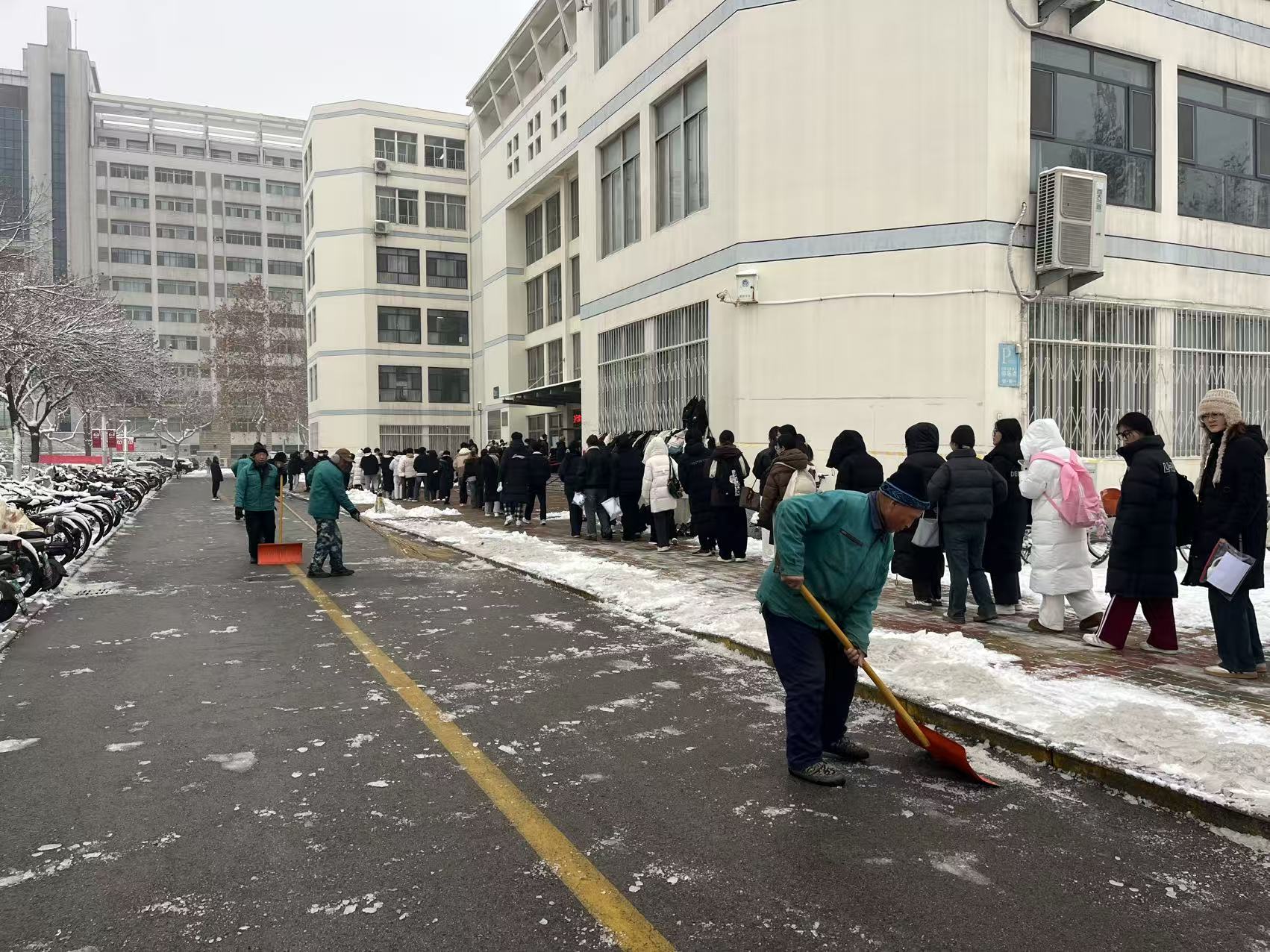 后勤工作人员连夜为师生清雪 保障四六级考试顺利进行