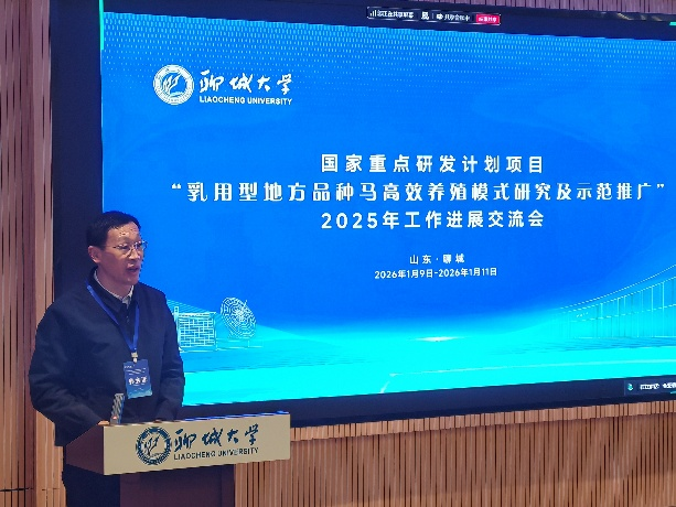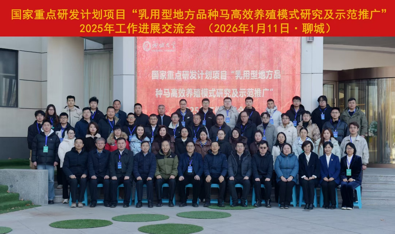 1月11日,国家重点研发计划项目“乳用型地方品种马高效养殖模式研究及示范推广”2025年工作进展交流会在beat365官方网站成功召开,beat365官方网站党委常委、副校长聂广明出席会议并致辞。来自全国多所高校、科研院所及企业示范基地的50余位专家学者齐聚一堂,深入交流项目实施中的技术难题、成果转化、合作协同等内容,系统梳理项目实施以来的工作进展、成果亮点与存在问题,统筹规划后续研究任务与示范推广方案,保障项目按计划高质量完成既定目标。