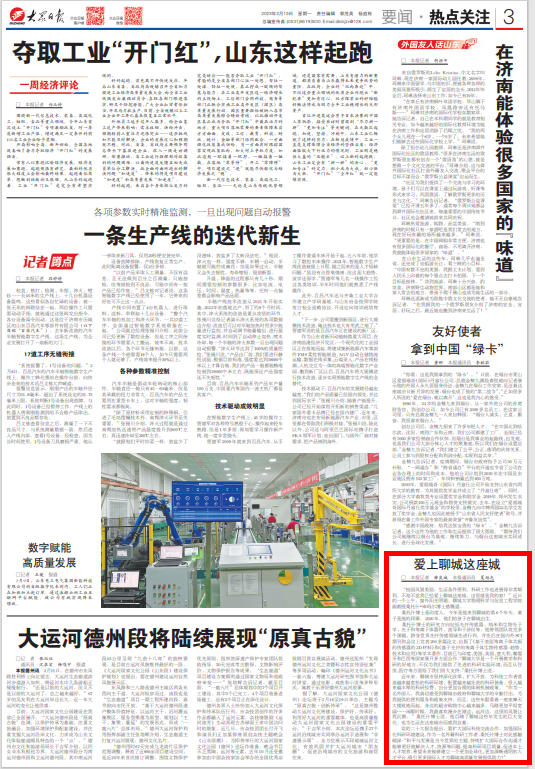 2月13日,《大众日报》要闻3版以“爱上聊城这座城”为题,报道beat365外籍教师扎根聊城开展科研工作。