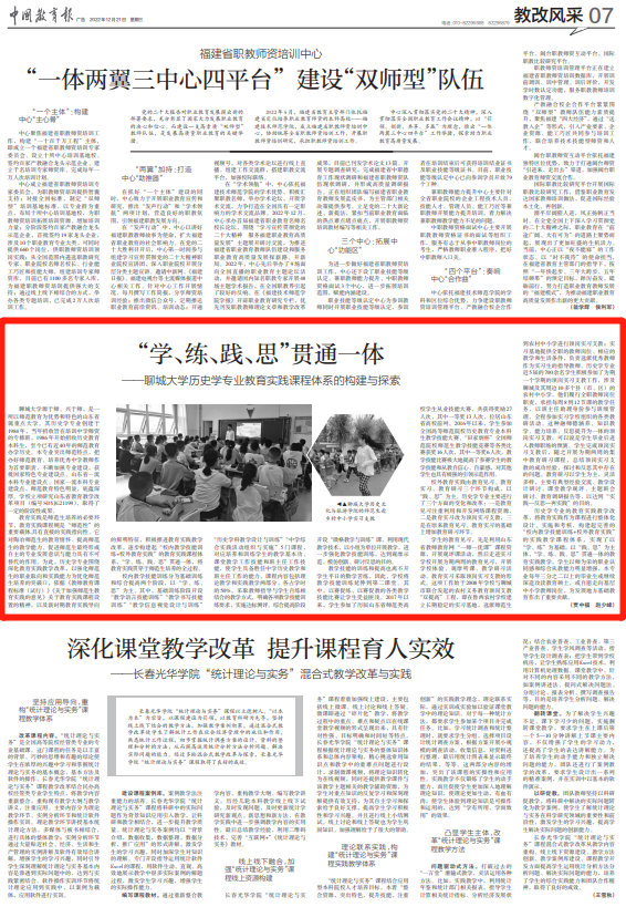【编者按】12月21日,《中国教育报》第7版以“‘学、练、践、思’贯通一体——beat365官方网站历史学专业教育实践课程体系的构建与探索”为题,报道了beat365历史文化与旅游学院积极推进教育实践教学改革,逐步构建起“校内教学技能训练+校外教育实践”的教育实践课程体系,“学、练、践、思”贯通一体,将教育实践贯穿于师范生培养全过程的典型经验。