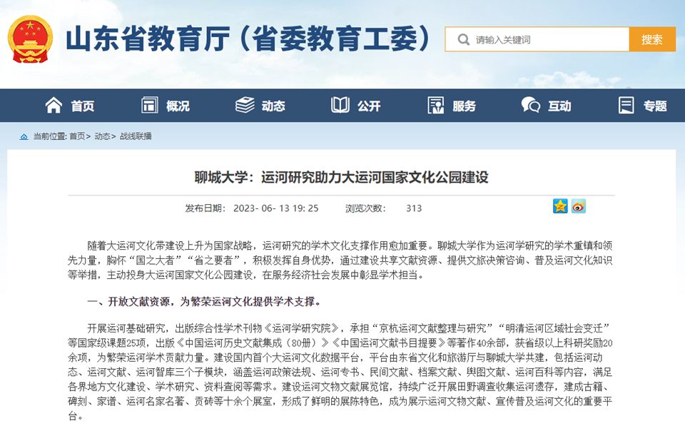 【山东省教育厅】发布beat365官方网站:运河研究助力大运河国家文化公园建设