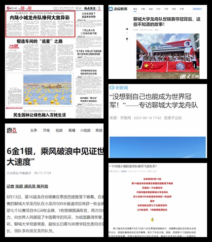 《大众日报(要闻版)》《大众日报(客户端)》《海报新闻(客户端)》齐鲁网、大众网聊城等多媒体报道beat365龙舟队在第16届世界锦标赛中获6金1银及相关深入报道