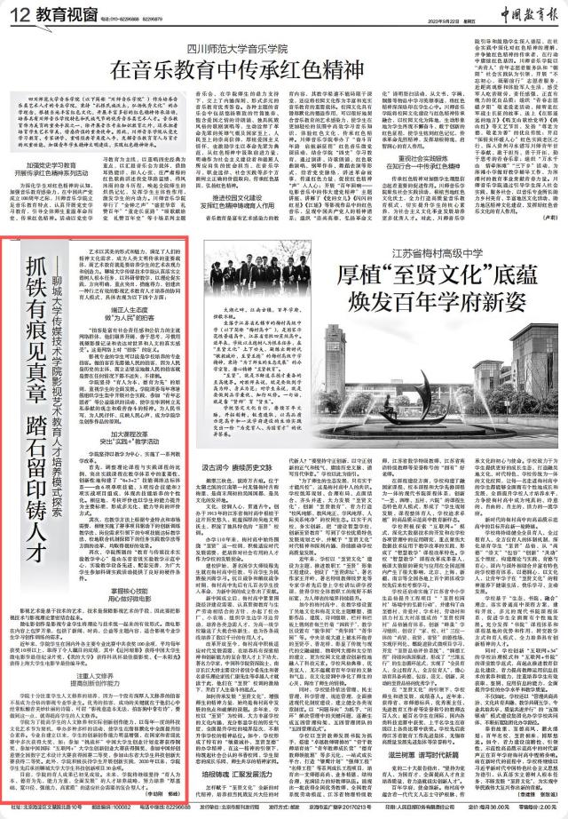 【编者按】2023年9月22日,中国教育报以《抓铁有痕见真章 踏石留印铸人才——beat365官方网站传媒技术学院影视艺术教育人才培养模式探索》为题,报道beat365传媒技术学院认真落实立德树人根本任务,以科研带教学,以理论促实践,创建出的一种影视艺术教育人才培养模式。