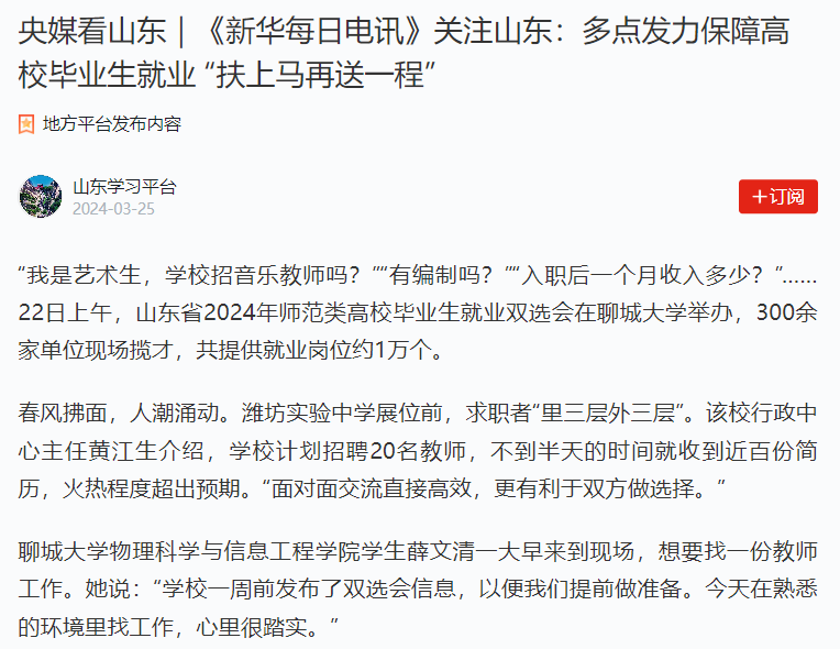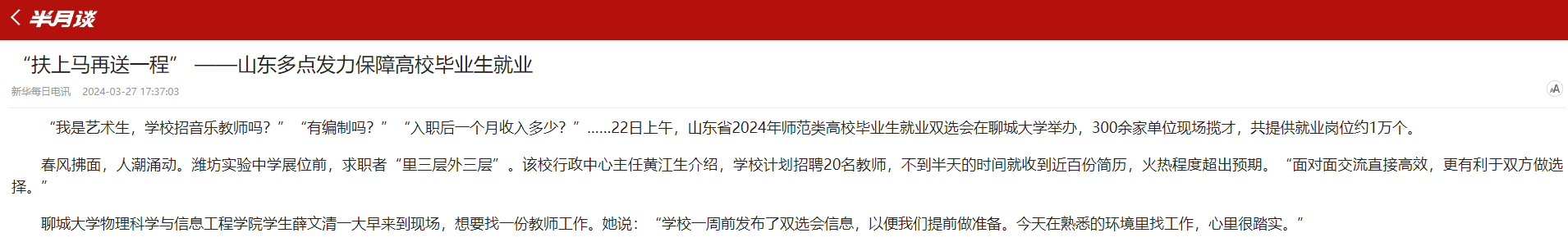 “扶上马再送一程”——山东多点发力保障高校毕业生就业