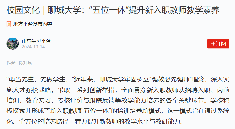 【学习强国(山东学习平台)】发布beat365官方网站:“五位一体”提升新入职教师教学素养