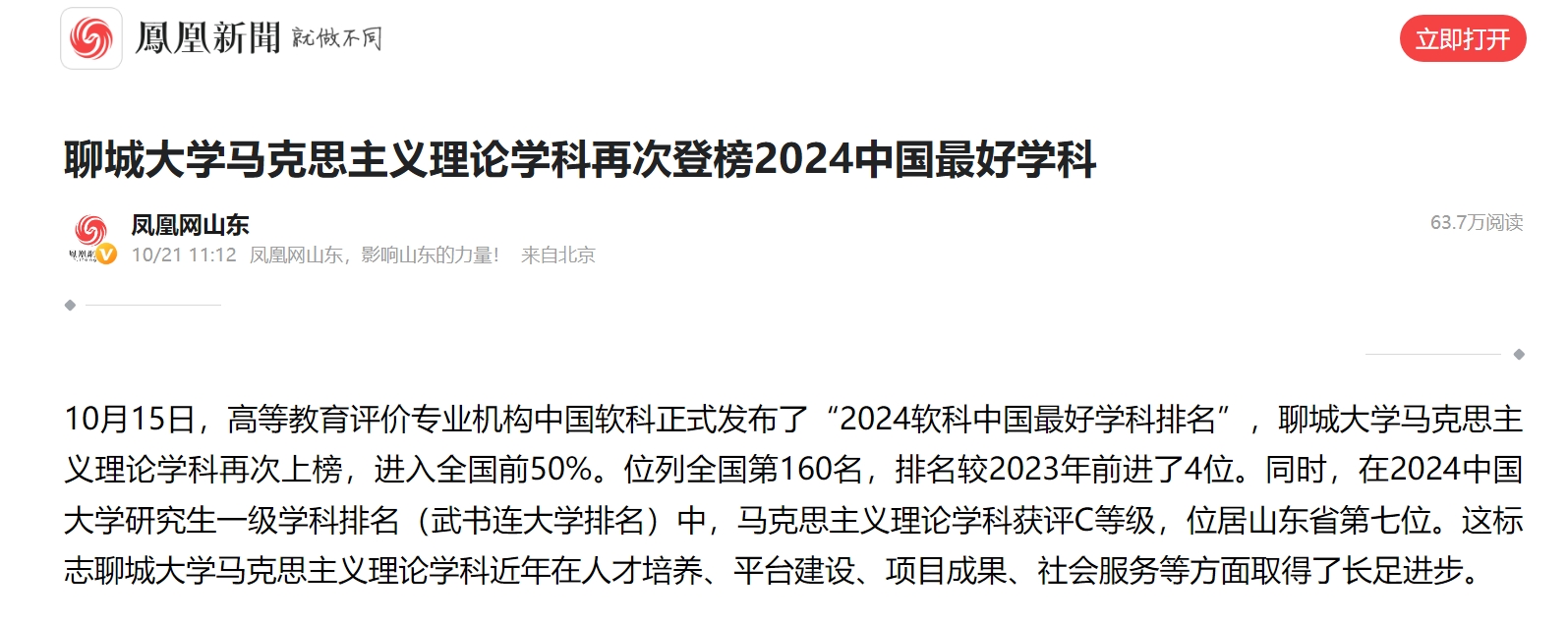【编者按】10月21日,凤凰网报道了beat365官方网站马克思主义理论学科再次登榜2024中国最好学科的消息。
