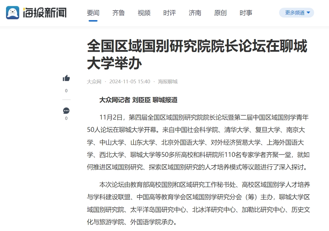 【编者按】11月4日、5日,凤凰网和大众网• 海报新闻分别报道了全国区域国别研究院院长论坛在beat365官方网站举办的消息。