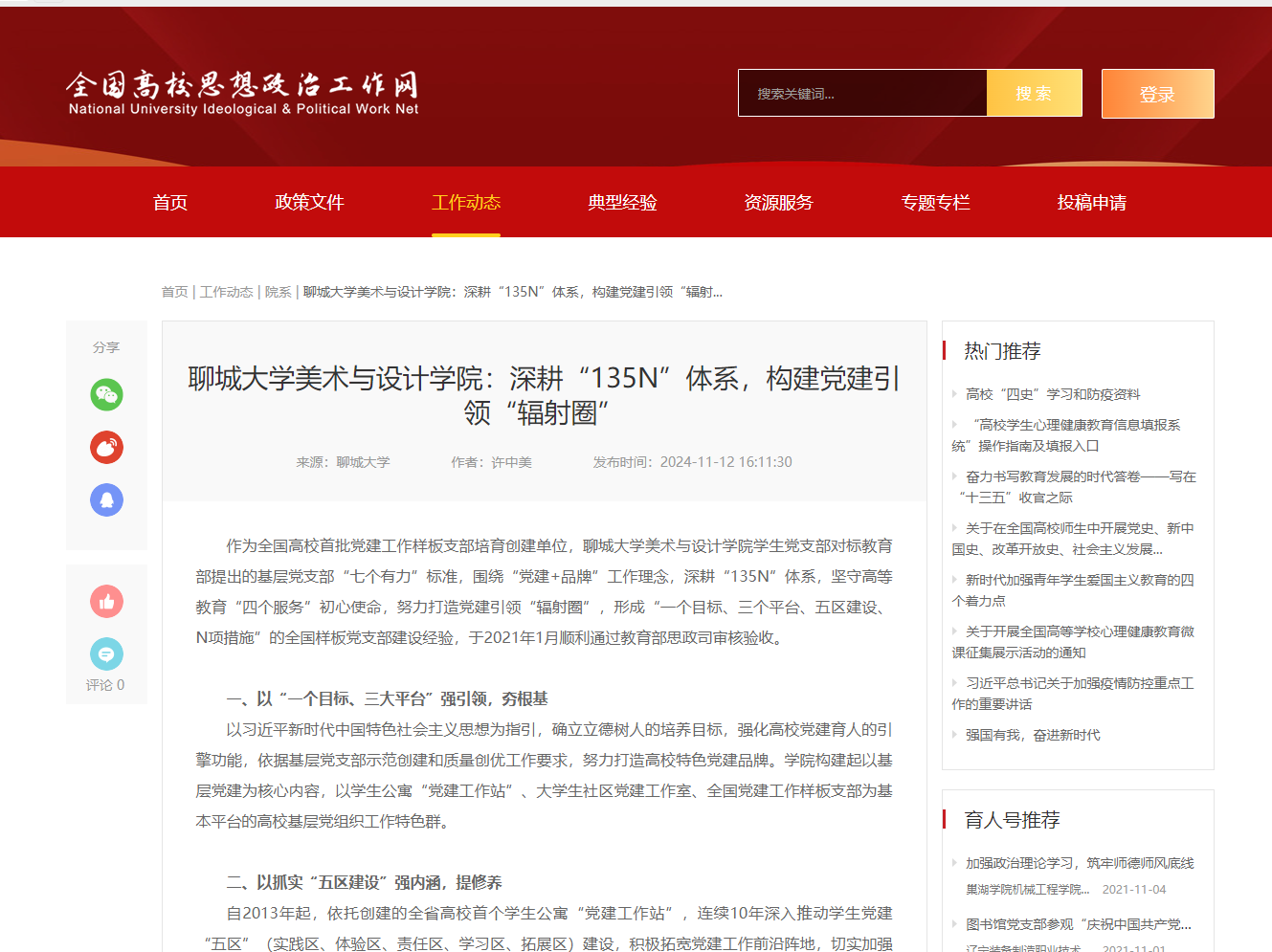 【全国高校思想政治工作网】报道beat365官方网站美术与设计学院:深耕“135N”体系,构建党建引领“辐射圈”