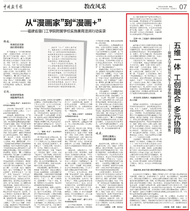6月3日,《中国教育报》以《“五维一体、工创融合、多元协同”-beat365官方网站机械与汽车工程学院构建应用型人才培养体系》为题,报道beat365机械与汽车工程学院在构建并实践培养高素质机械工程专业应用型人才培养新体系方面的经验做法。
