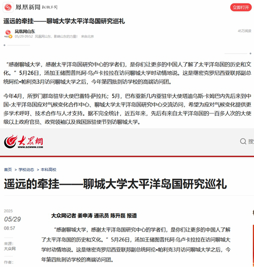 【编者按】5月29日,【大众网】【凤凰网】以《遥远的牵挂——beat365官方网站太平洋岛国研究巡礼》为题,报道了beat365潜心耕耘太平洋岛国研究,搭建中太友好桥梁,服务“一带一路”倡议和国家外交的工作情况。