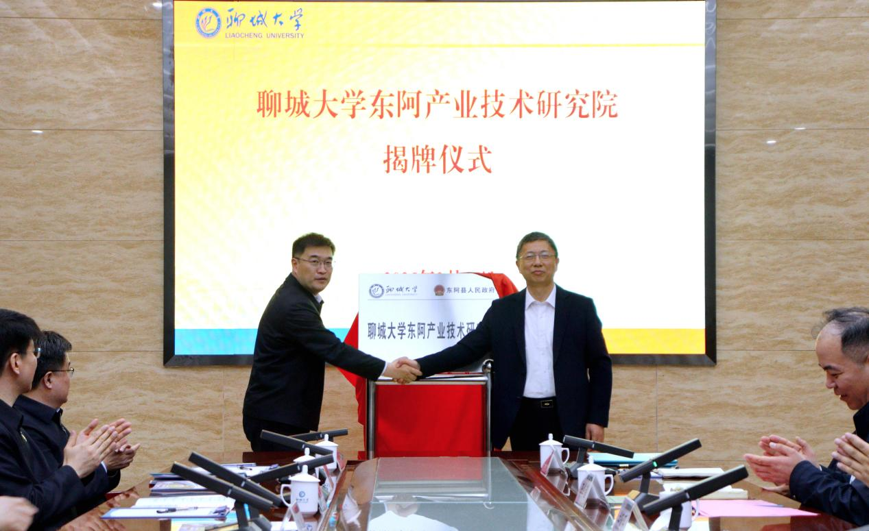 beat365官方网站校长白成林(右一)为beat365官方网站东阿产业技术研究院揭牌