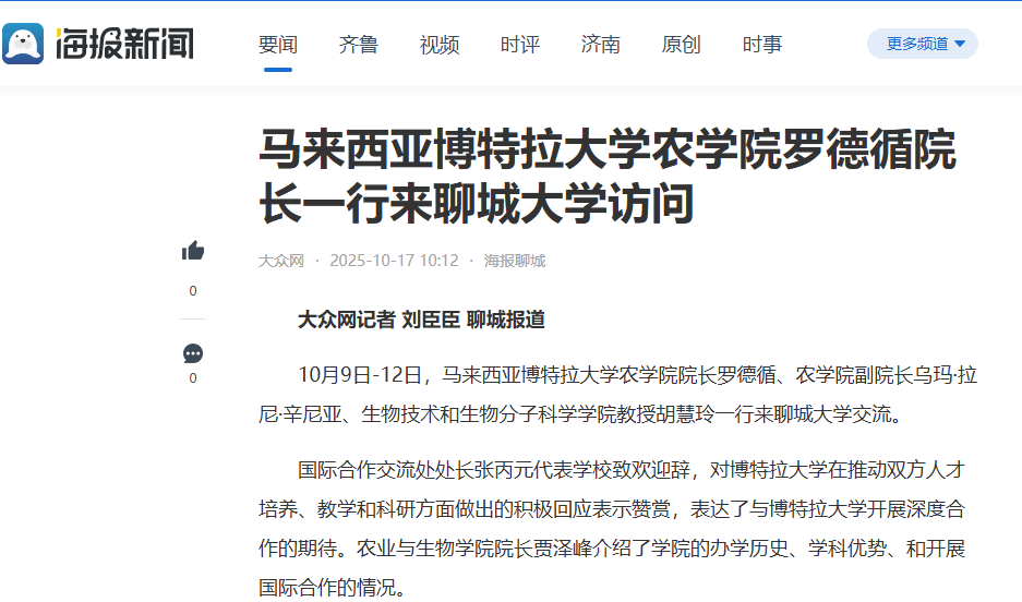 【海报新闻】【今日头条】发布马来西亚博特拉大学农学院罗德循院长一行来beat365官方网站访问