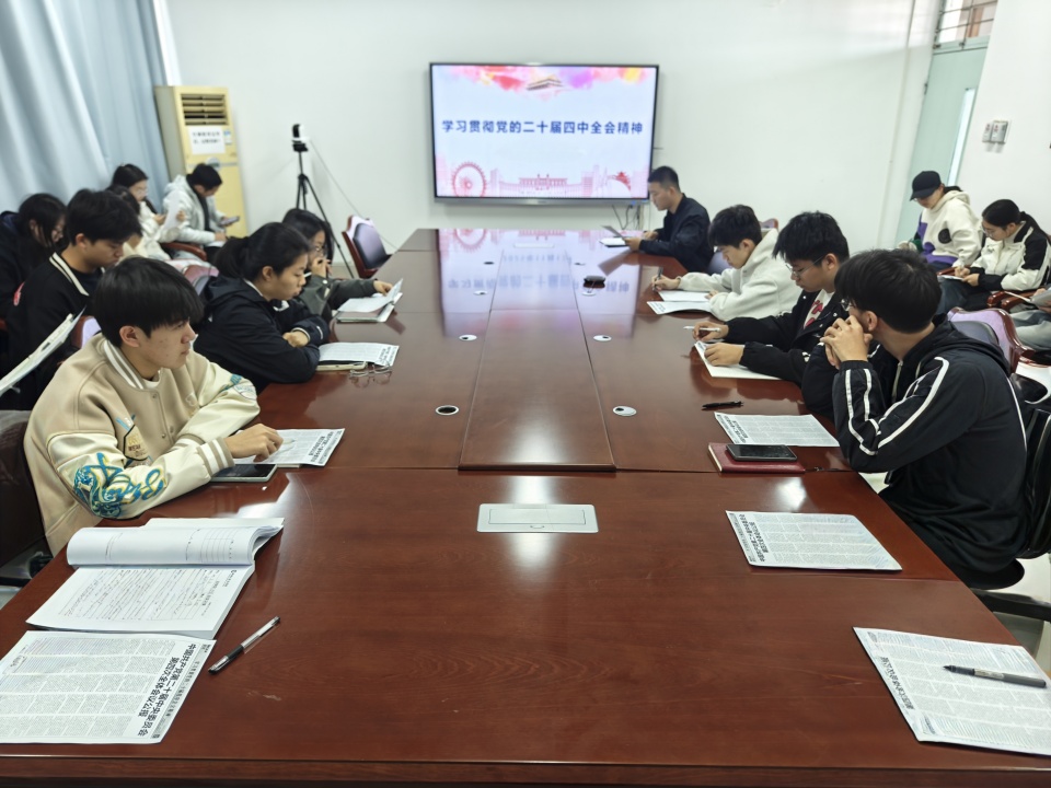 为深入学习贯彻党的二十届四中全会精神,进一步提升青年学生的思想政治素养,11月18日,法学院于西校区10#B507组织学生干部学习党的二十届四中全会精神,本次学习活动由辅导员孟冠军主持,法学院主要学生干部参加此次活动。