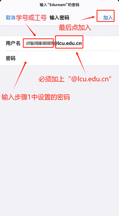 5.身份栏:输入学号或工号@lcu.edu.cn;