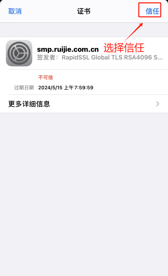 4.证书:选择“信任”;