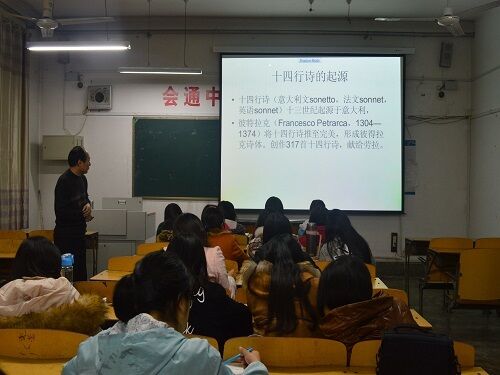 为了加深外国语学院学生对英语之美的认识,11月21日下午,耿宁教授在外国语学院A116室作了题为“永不凋谢的夏天——莎士比亚十四行诗赏析“的报告。