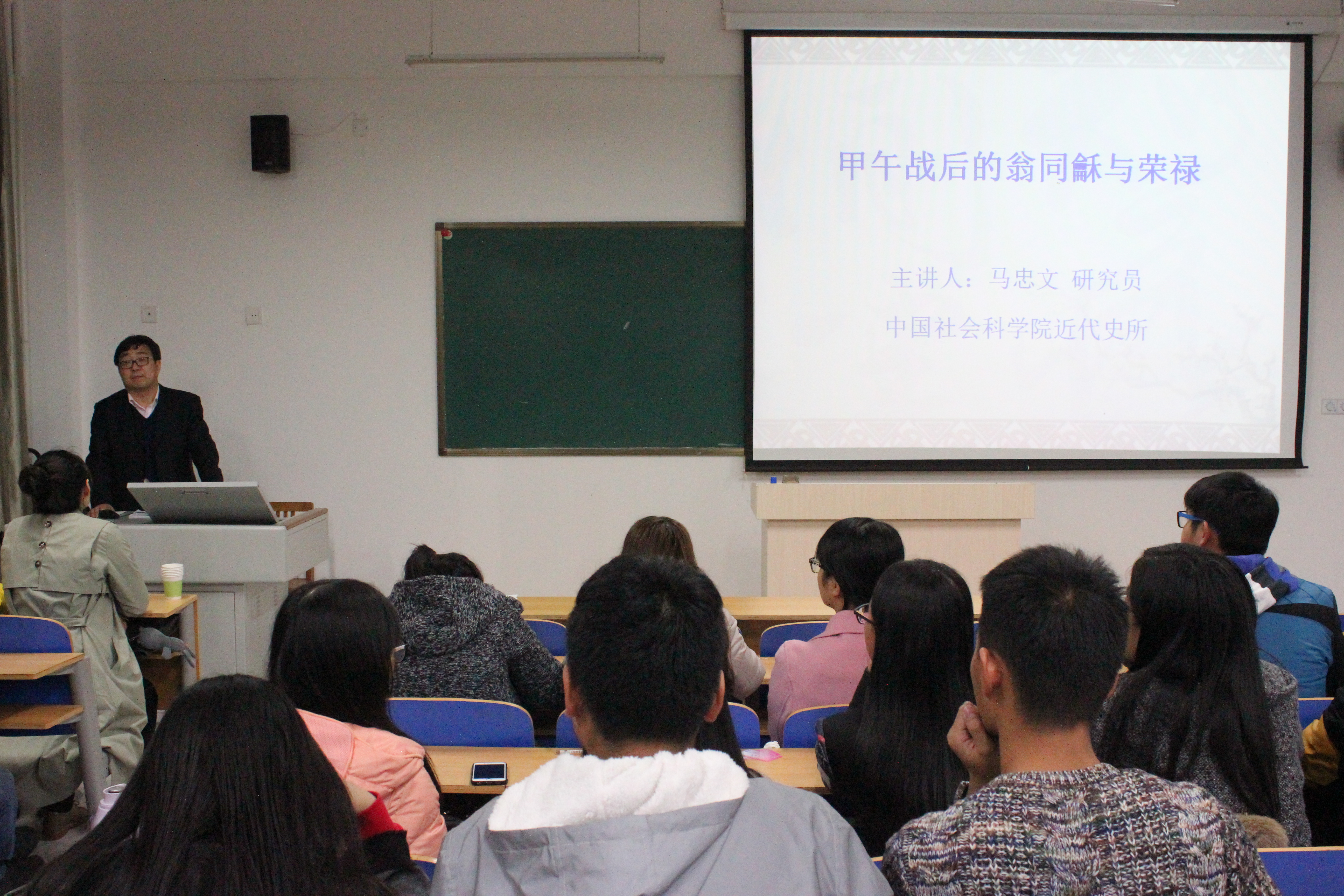 11月11日,中国社会科学院近代史所马忠文研究员做客历史文化与旅游学院学术课堂,以“甲午战后的翁同龢与荣禄”为题为师生作了精彩学术报告。