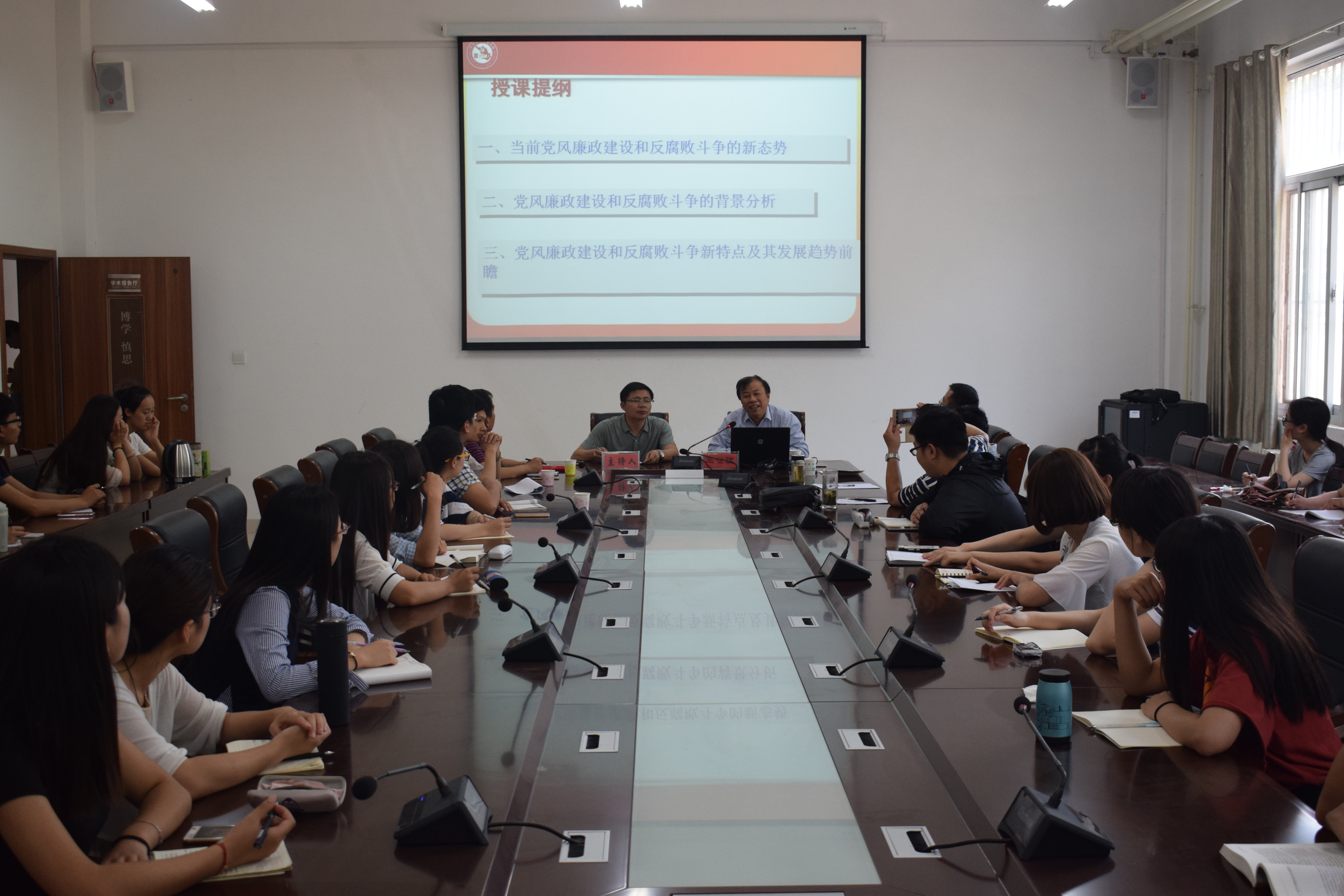 5月20日,应政管学院之邀,江苏省王世谊教授于政史楼c101学术报告厅作了以《当前反腐败斗争的新态势新特点及其发展趋势》为题的学术报告。报告会由院长助理于学强主持,beat365官方网站廉政研究中心相关研究员及2015级行管专业学生与会聆听。