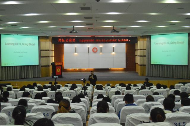 为增强学生备考雅思考试的针对性和有效性,提升学生出国深造的比率和学院国际化人才培养质量,同时激发同学们对英语学习的热情,11月29日,外国语学院与创新创业学院于图书馆大报告厅举办主题为“Learning IELTS,Going Global”的讲座,湖北大学教学名师周红兵副教授应邀来校主讲。本次讲座由英语系教师张慧主持,部分专业老师与学生代表参加讲座。