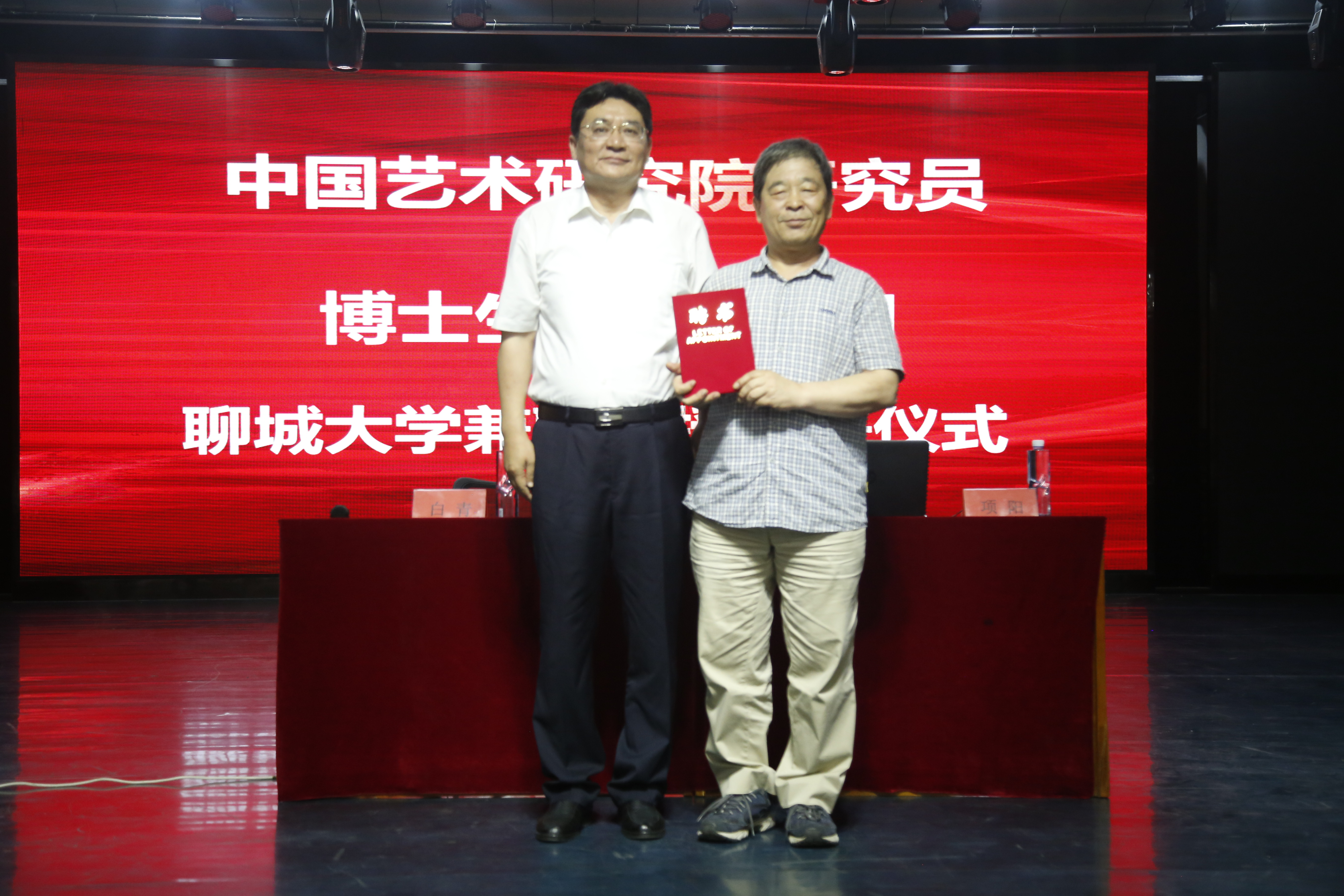 报告会开始前,白青为项阳颁发兼职教授聘书。