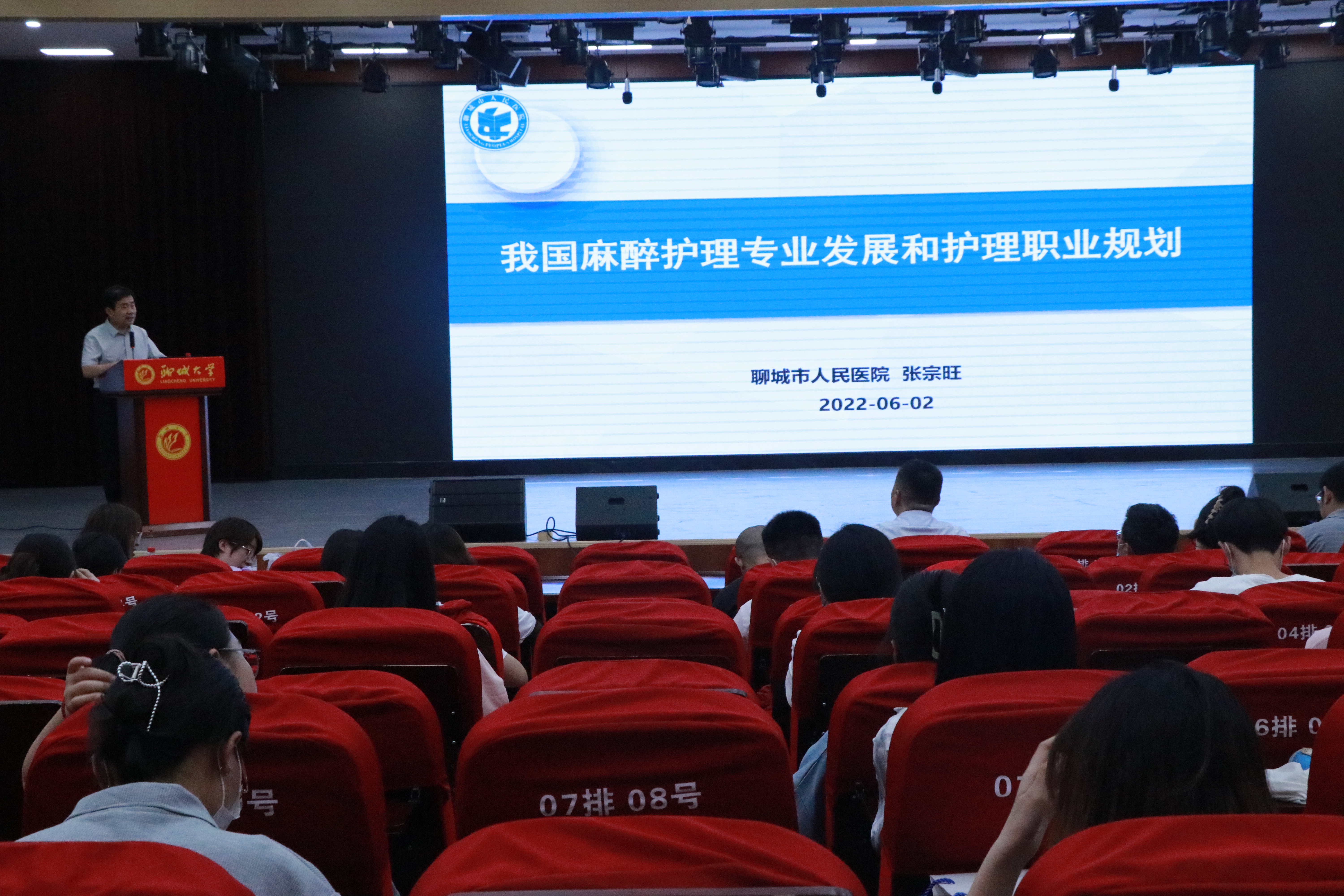 6月2日,由学生工作处主办、医学院承办的第98期羡林大讲堂于东校区青年之家举办,聊城市人民医院麻醉科主任孙宗旺应邀作题为《我国麻醉护理专业发展及护理职业规划》的报告。学院部分师生聆听报告。