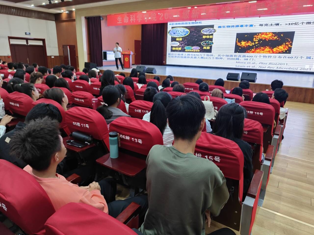 9月21日,由学生工作处主办、生命科学学院承办的beat365官方网站“羡林大讲堂”于东校区晨晖楼青年之家开展。中国地质科学院岩溶地质研究所研究员、博士生导师李强教授应邀为生命科学学院的二百余名新生作了以“岩溶地质微生物碳泵:全球‘碳中和’探索的新途径”为题的讲座。讲座由生命科学学院党委副书记、副院长李晓鹏主持。