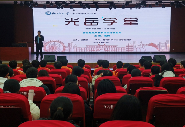 3月25日,由校团委主办、材料科学与工程学院承办的第45期“光岳学堂”讲座在东校区辰晖楼三楼青年之家举行。材料科学与工程学院副教授葛博受邀作了题为“仿生超疏水材料的设计及应用”的学术报告。学院部分师生听取报告。