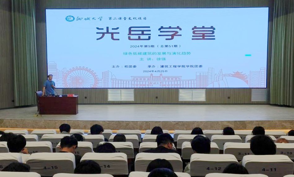 4月25日,由校团委主办、建筑工程学院承办的第51期“光岳学堂”于东校区实训楼报告厅举行,建筑工程学院学院教授徐强作题为“绿色低碳建筑的发展与演化趋势”的讲座。学院学生代表聆听了讲座。