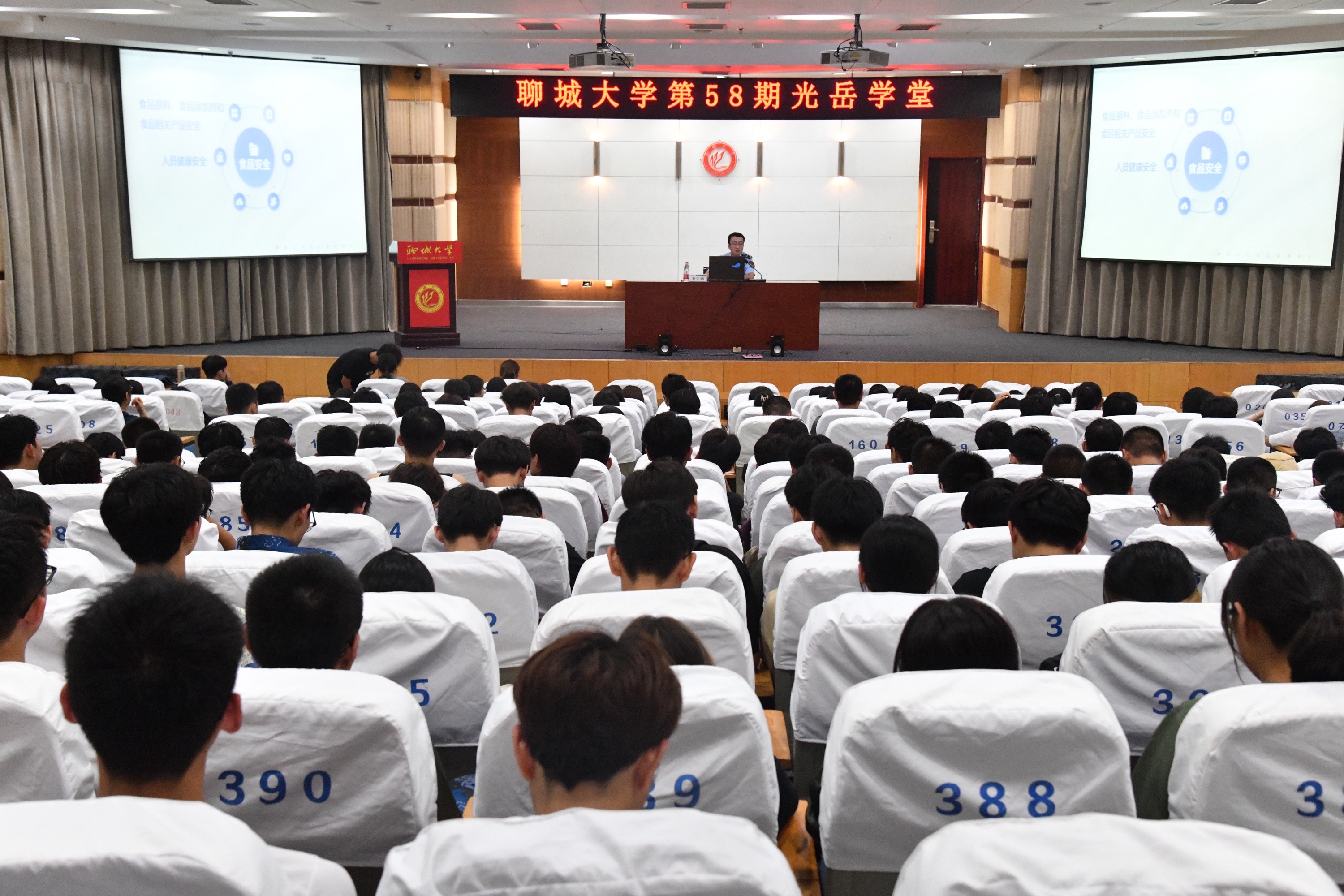 9月13日,由校团委主办,计算机学院团委承办的第58期光岳学堂于西校区图书馆报告厅举办。聊城市市场监管综合执法支队食品经营执法科科长李守鹏作题为“守护舌尖安全,共筑健康校园”的食品安全专题讲座。计算机学院部分学生聆听讲座。
