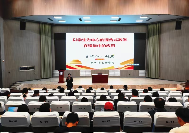 赵燕讲到,混合式教学是一种将多种学习方法融合的教学法,最常见的学习方法就是融合线上学习和面对面学习。赵燕以所授《植物学》课程为例,示范了线上线下混合式教学的全过程。她通过实操演示进行课堂互动,全体参训教师现场体验了“雨课堂”平台的签到考勤、限时推题、弹幕投稿、随机点名等交互功能,详细展示了组织教学、复习提问、讲授新课、巩固新课、布置作业等课堂教学的五大环节。 赵燕认为,教育的本质是一种培养人的行为,教师是自己课堂的主人,老师对课堂管控会增加学生的自律性,严慈共济会增进师生感情。有效的课堂教学应该是教师和学生的不断互动,教师应善于采取“案例式”、“启发式”教学方式,将教学模式由传统的“灌输式”转变为“学生主导式”,培养学生自主学习的习惯。 赵燕强调,新入职教师在具备扎实知识的基础上,应多探索创新科学的教育教学方法、做一名在学习、处世、生活等各个方面都能给予学生帮助和指导的智慧型教师。