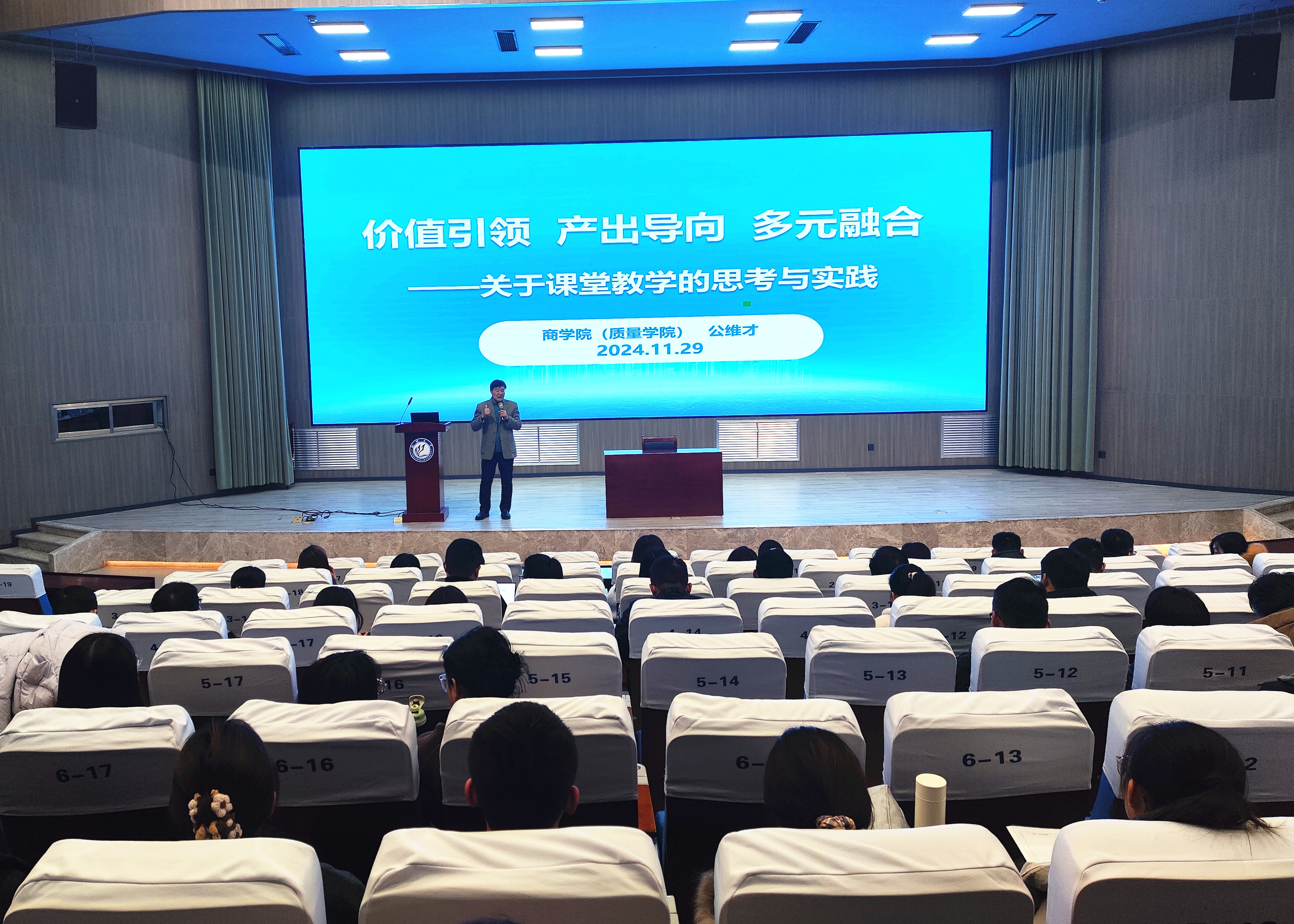 为帮助新入职教师融通知识传授与价值引领,充分发挥课程育人功能,推进beat365课程思政建设,11月29日,教师工作部邀请商学院(质量学院)公维才教授做了题为《价值引领 产出导向 多元融合——关于课堂教学的思考与实践》的专题讲座。2024年全体新入职教师参加培训。
