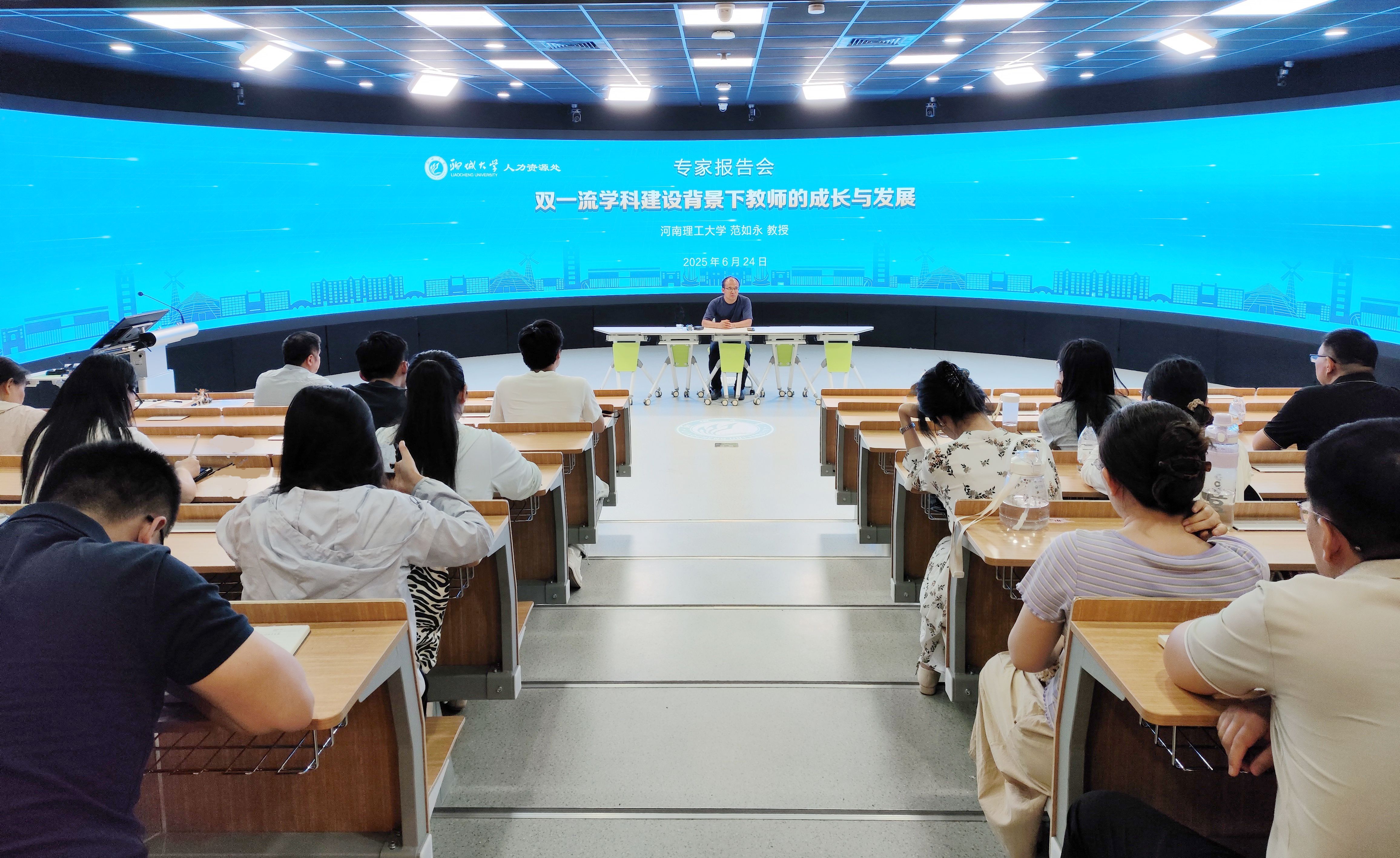 为促进beat365教师明晰发展路径,增强职业认同感和责任使命感,6月24日,河南理工大学教授范如永应邀作了题为《双一流学科建设背景下教师的成长与发展》专题讲座。各学院70余名教师参加讲座。