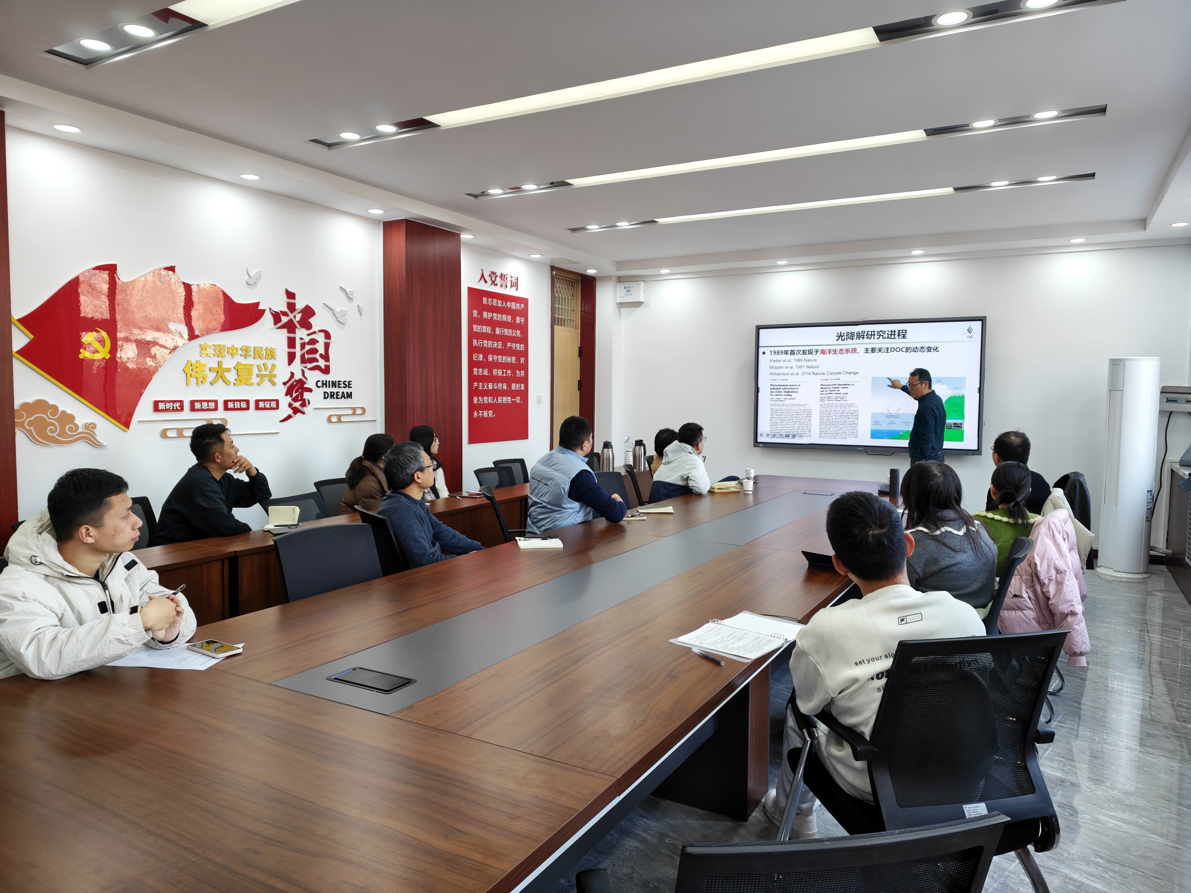 王庆伟从陆地生态系统光降解的研究背景出发,介绍了这一领域的研究意义,系统阐述了光降解在促进有机质分解、调控生态系统碳动态中的关键作用。并结合近年来的研究成果,通过实验数据和模型模拟,讲解了光降解过程的机制及其对生态系统结构和功能的影响,阐明了不同光质在凋落物分解中的重要作用,证实了蓝光光谱在凋落物分解中的重要作用。王庆伟还与其他13位科学家合作撰写了四年期评估的“陆地生态系统”章节,综合评价了平流层臭氧、紫外线辐射和气候变化对陆地生态系统和生物地球化学循环的交互影响;重点强调极端气候事件显著改变陆地生物和生态系统对太阳辐射变化的响应,并对生物多样性带来的深远影响;小组还讨论了植物对紫外辐射增强的适应策略,紫外辐射和其他气候变化因素对农作物的交互影响,以及紫外线辐射在植物凋落物和生物杀虫剂等有机物分解中的重要作用。