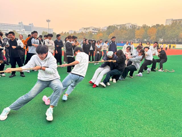 本次拔河比赛采用单败淘汰制规则,实行男女混合赛制。12支队伍经多轮抽签对决,输者即淘汰,半决赛负者加赛决出三四名,直至决出冠亚军。秉持“友谊第一,比赛第二;积极向上,团结奋进”的宗旨,25级新生踊跃参与,展示出阳光开朗,活泼向上的精神风貌。随着比赛哨声的响起,队员们眼神坚毅,双手紧紧握住绳子,双脚稳稳扎根地面,铆足了劲把绳子往后拉。“一二,一二!”整齐划一的口号声响彻云霄,那是团结的呐喊,是力量的凝聚。在绳子的缓缓偏移中,晋级的队伍逐渐显现,队员们齐声呐喊庆祝着进入下一轮的喜悦。不久,决赛的哨声骤然吹响,脱颖而出的两支队伍展开终极较量。队员们拼尽全力,脸上汗珠密布、青筋暴起,倾注所有力量与激情。被淘汰的队员们也并未因此气馁,他们挥舞着双臂,为场上的团队加油助威。一番激烈对抗后,胜者队伍诞生,他们配合默契,力量惊人,充分展现了强大的团队凝聚力。带着这份信心和希望,他们将继续踏上征程,参加校级拔河比赛,为荣誉而战。